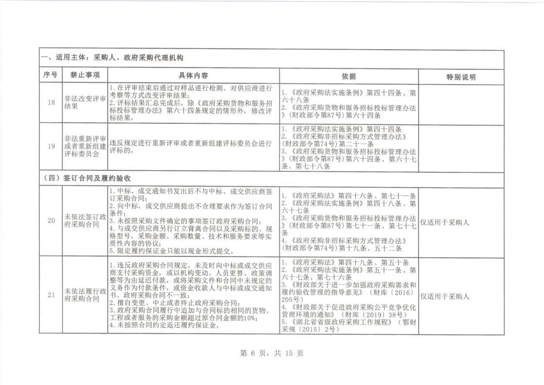 湖北省财政厅关于印发湖北省政府采购负面清单的通知【鄂财采发〔2019〕6号】
