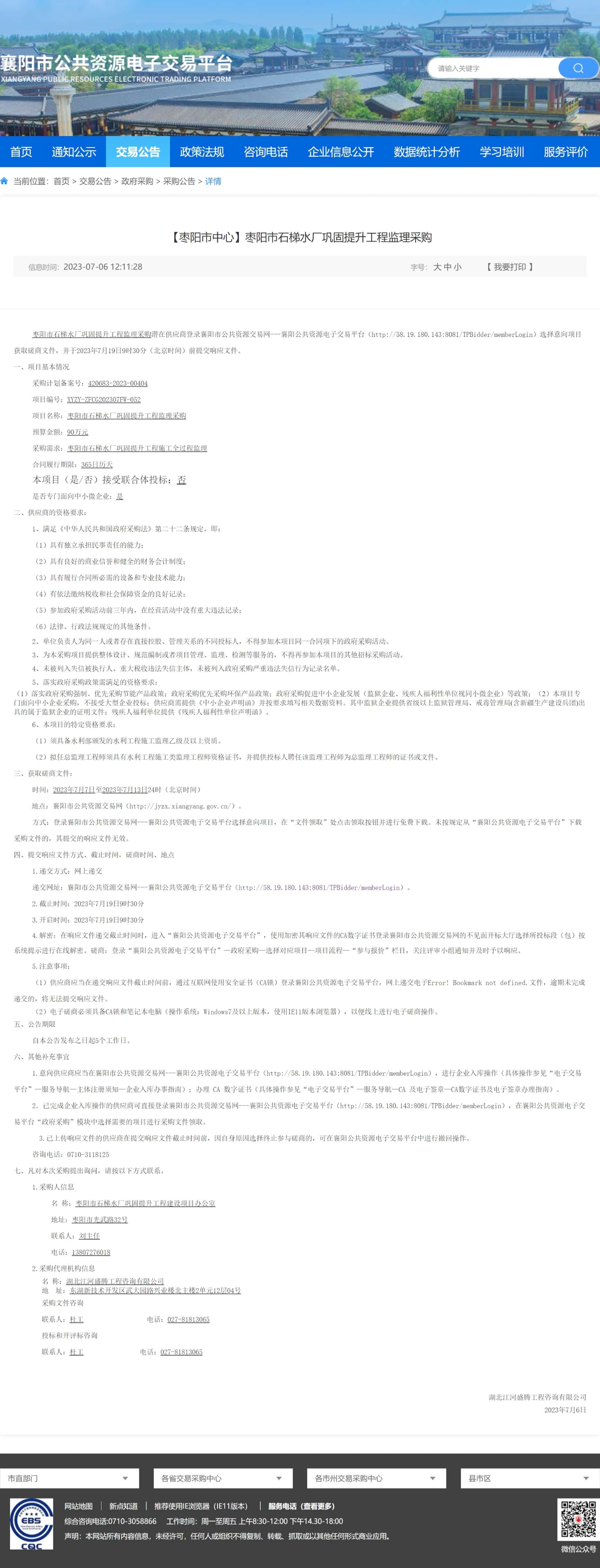 来源:襄阳市公共资源交易中心