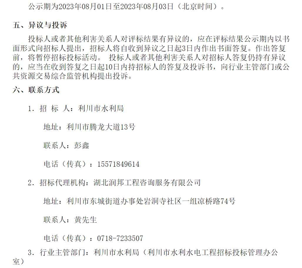 3.行业主管部门:利川市水利局(利川市水利水电工程招标投标管理办公室)