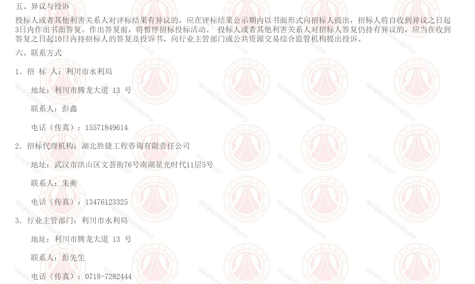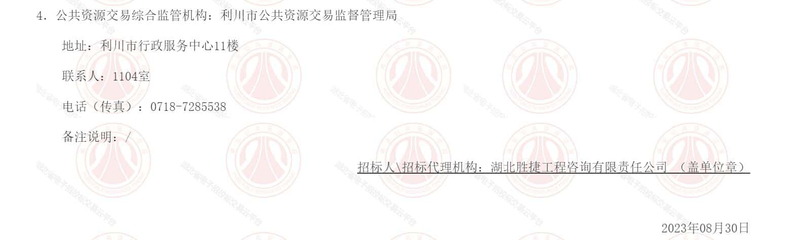 4.公共资源交易综合监管机构:利川市公共资源交易监督管理局