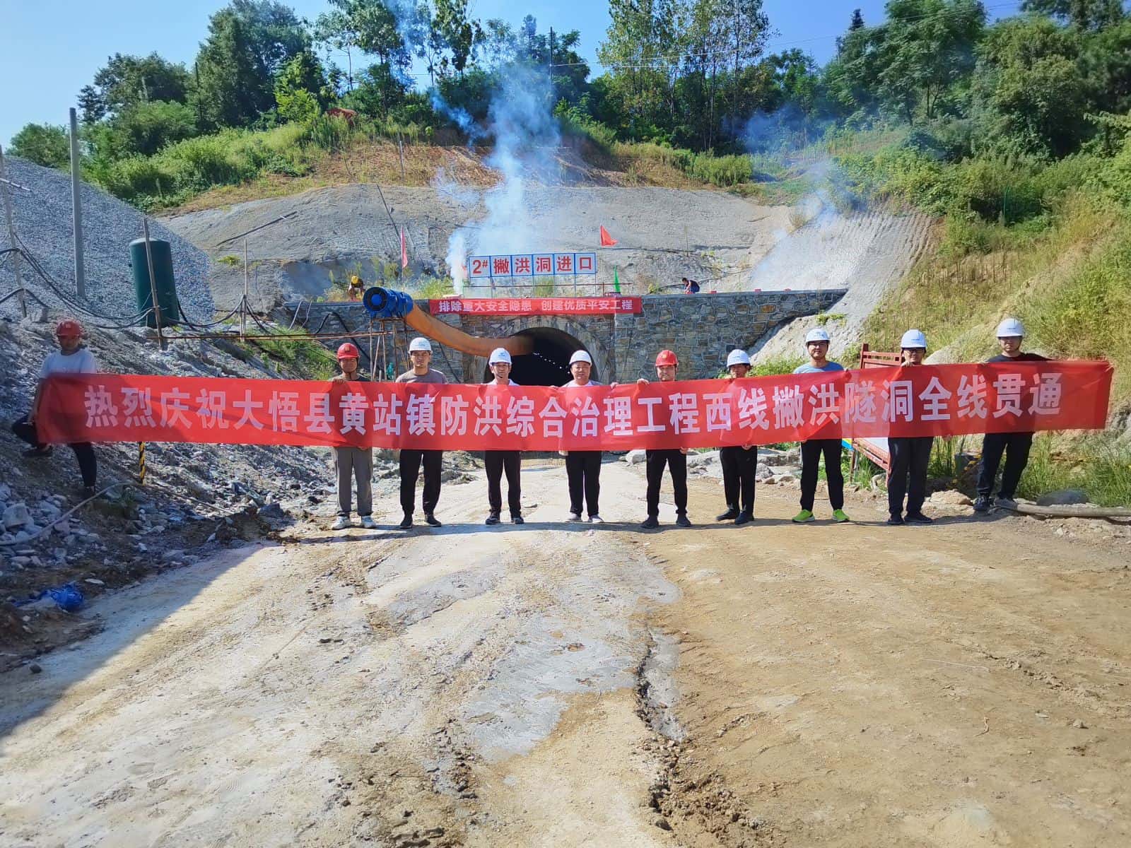 大悟县黄站镇防洪综合治理工程西线撇洪隧洞分为1#撇洪隧洞268m、2#撇洪隧洞404m两段,1#撇洪隧洞于2023年7月25日贯通,2#撇洪隧洞于2023年8月23日贯通。历时376天,西线撇洪隧洞全线贯通。