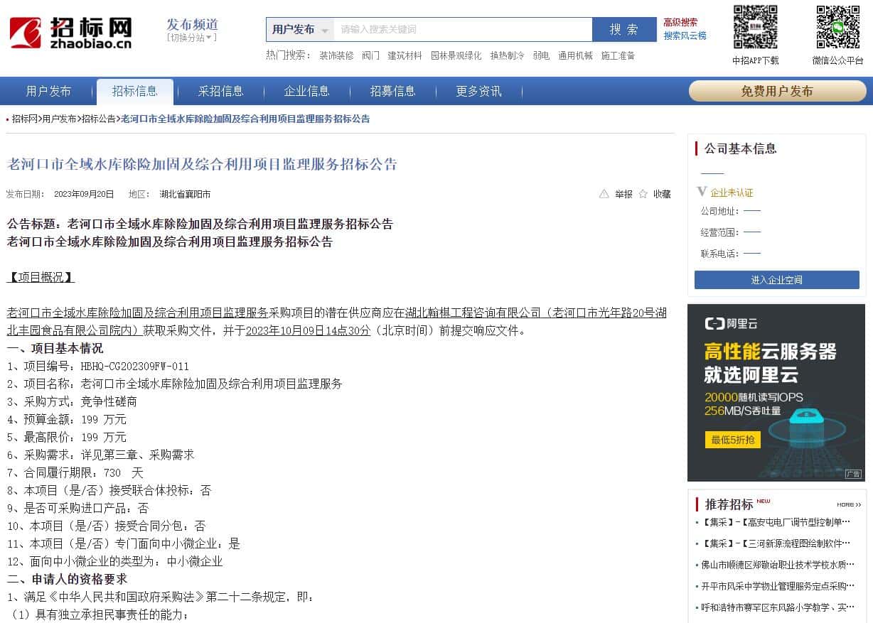 2、项目名称:老河口市全域水库除险加固及综合利用项目监理服务