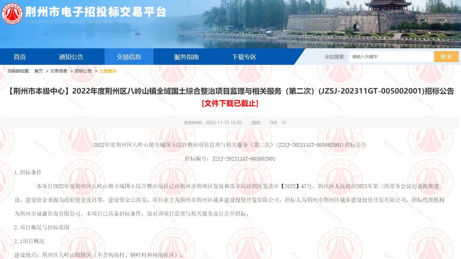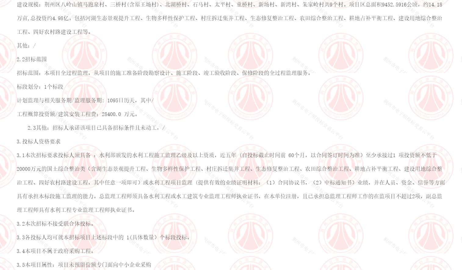 2022年度荆州区八岭山镇全域国土综合整治项目监理与相关服务(第二次)(JZSJ-202311GT-005002001)招标公告