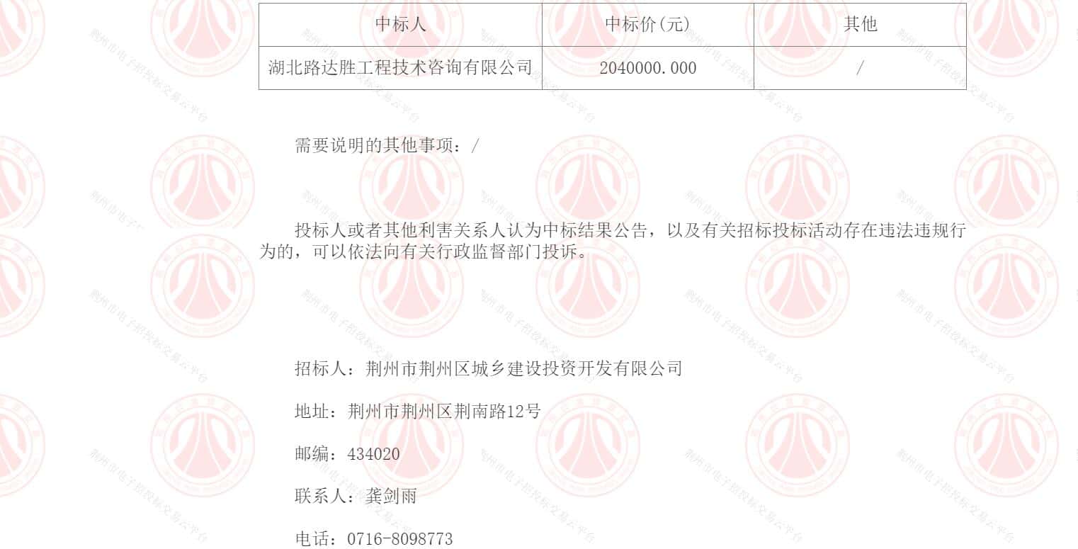 招标人:荆州市荆州区城乡建设投资开发有限公司