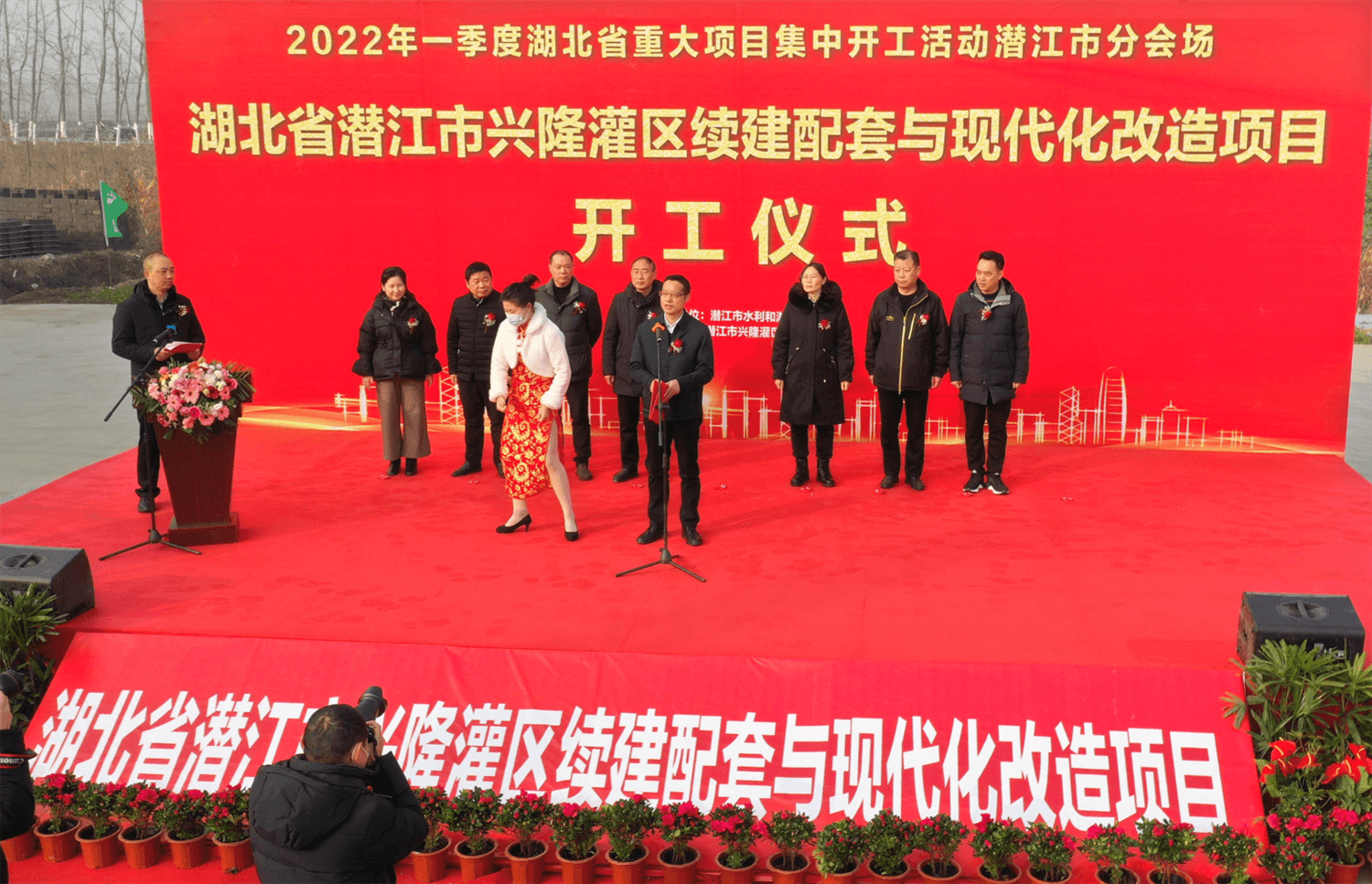 9时58分,潜江市人民政府副市长王冰宣布:潜江市兴隆灌区续建配套与现代化改造工程开工!