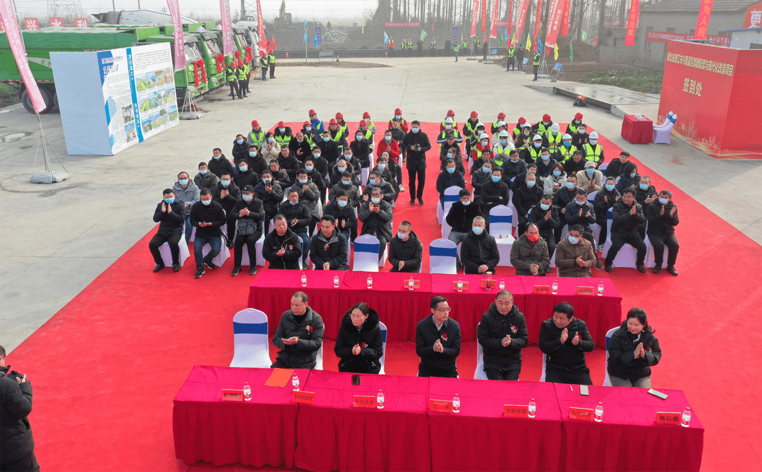 潜江市熊口镇莲市村彩旗飘飘,鞭炮雷鸣。这里正在举行潜江市兴隆灌区续建配套与现代化改造工程开工仪式。湖北凯耀宏建设工程有限公司董事长徐述恺、公司党支部书记兼总经理刘青山、公司法人兼副董事长郑兴艳参加了开工仪式。
