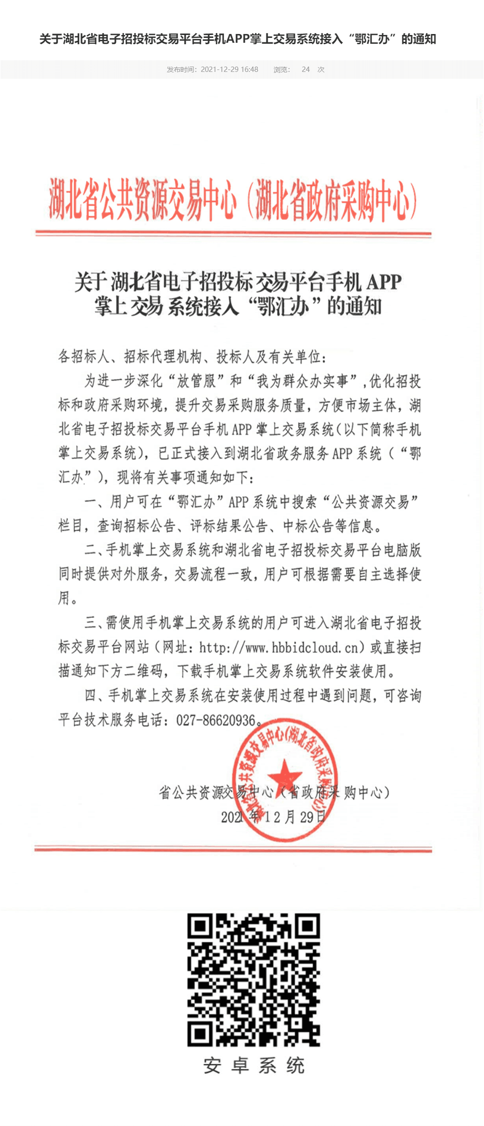 关于湖北省电子招投标交易平台手机APP掌上交易系统接入“鄂汇办”的通知