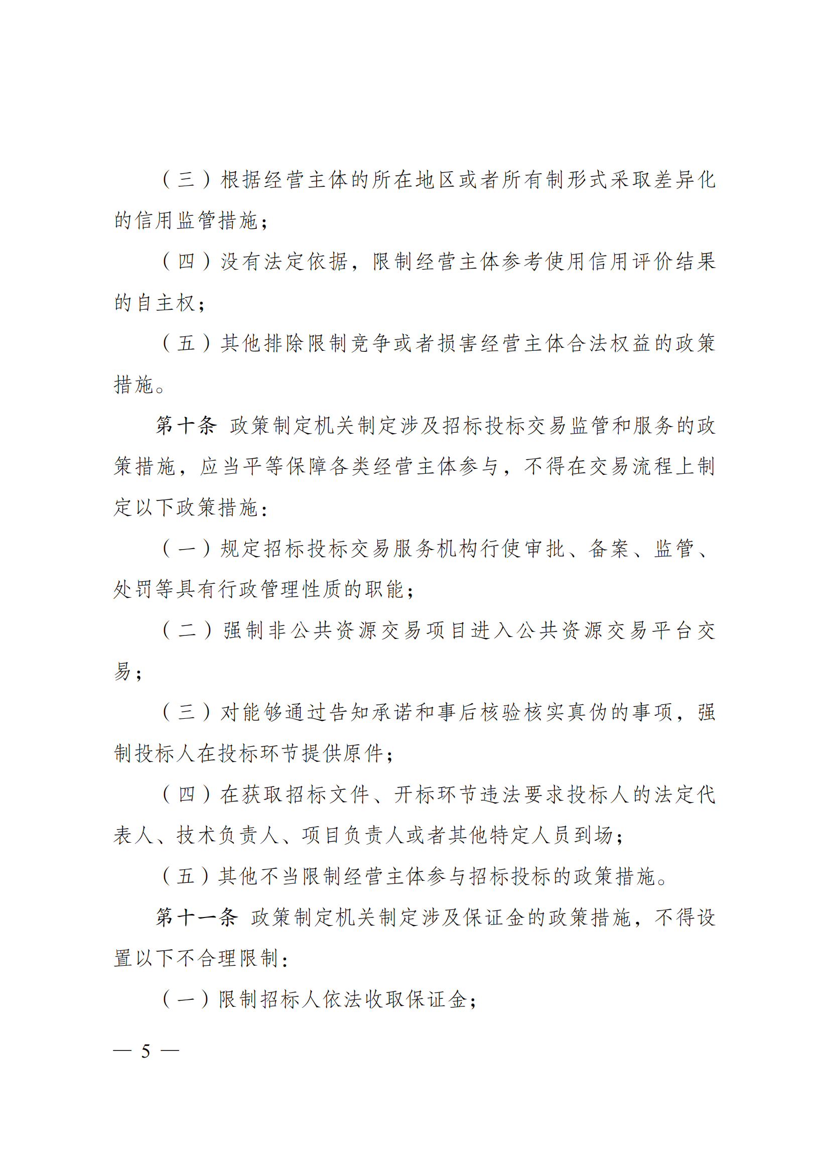(五)其他排除限制竞争或者损害经营主体合法权益的政策措施。