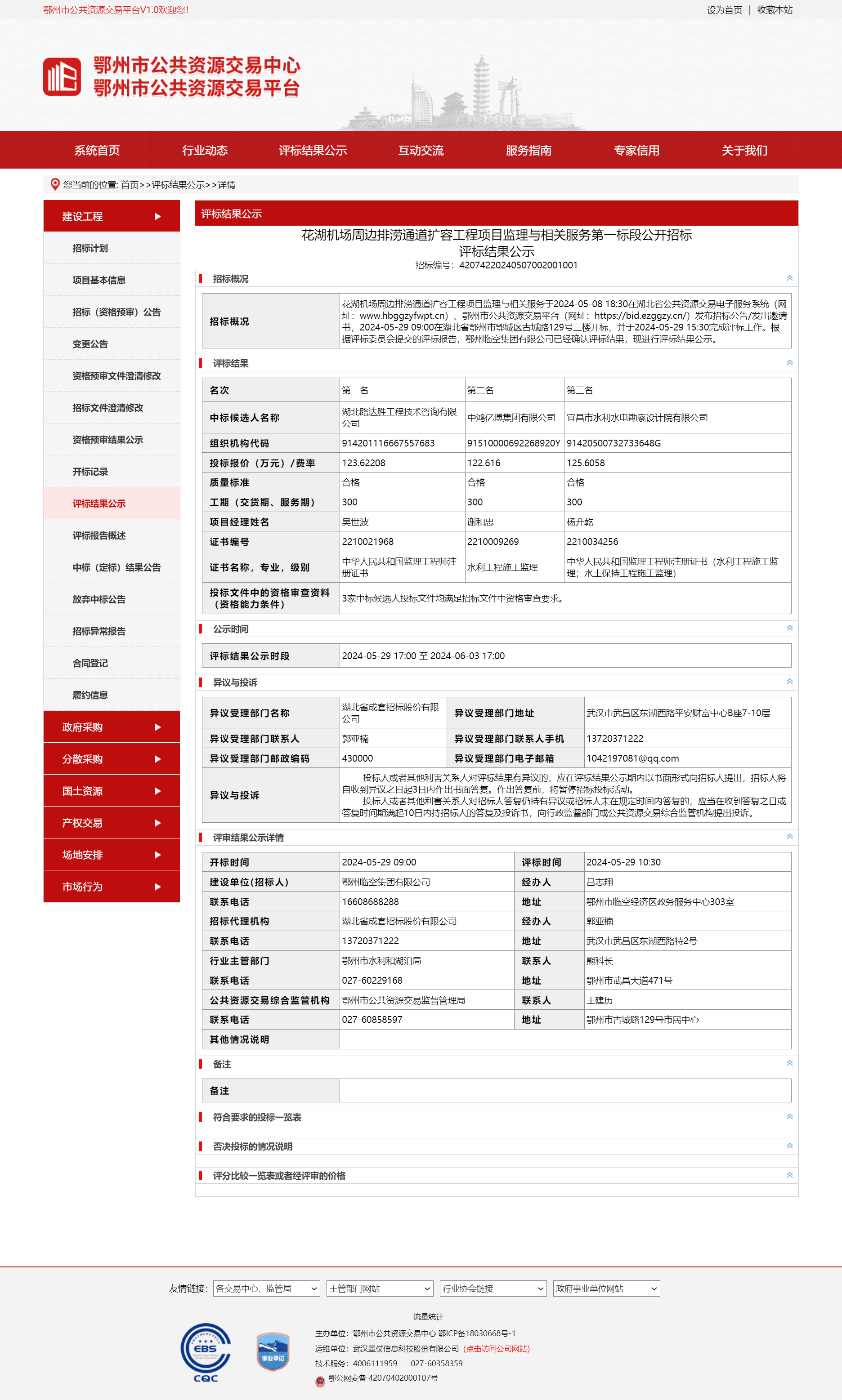 花湖机场周边排涝通道扩容工程项目监理与相关服评标结果公示