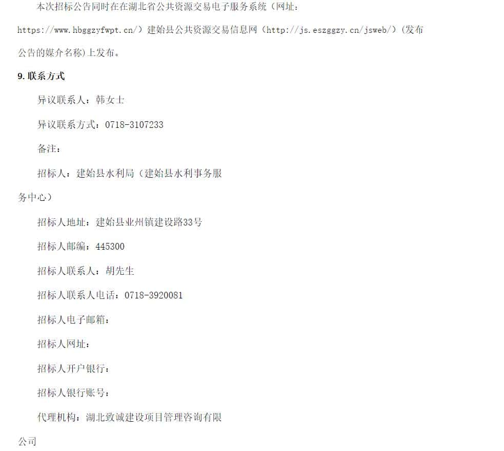 | 本次招标公告同时在在湖北省公共资源交易电子服务系统(网址:https://www.hbggzyfwpt.cn/)建始县公共资源交易信息网(http://js.eszggzy.cn/jsweb/)(发布公告的媒介名称)上发布。 | ||||||||||||||||||||||