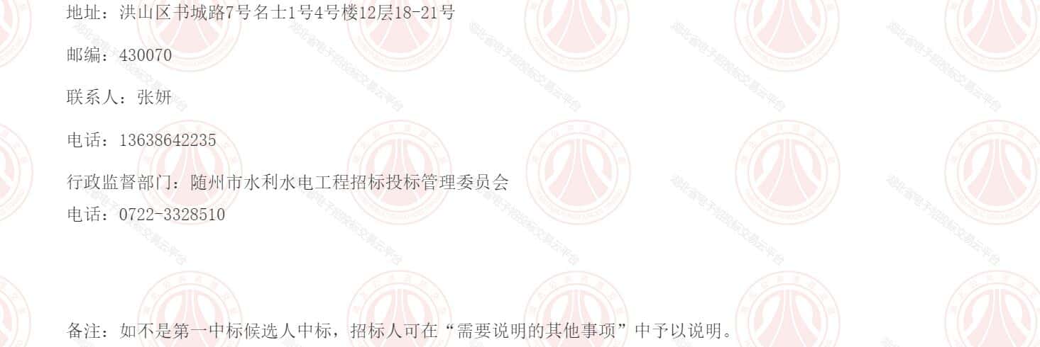 | 行政监督部门:随州市水利水电工程招标投标管理委员会 | |||||||