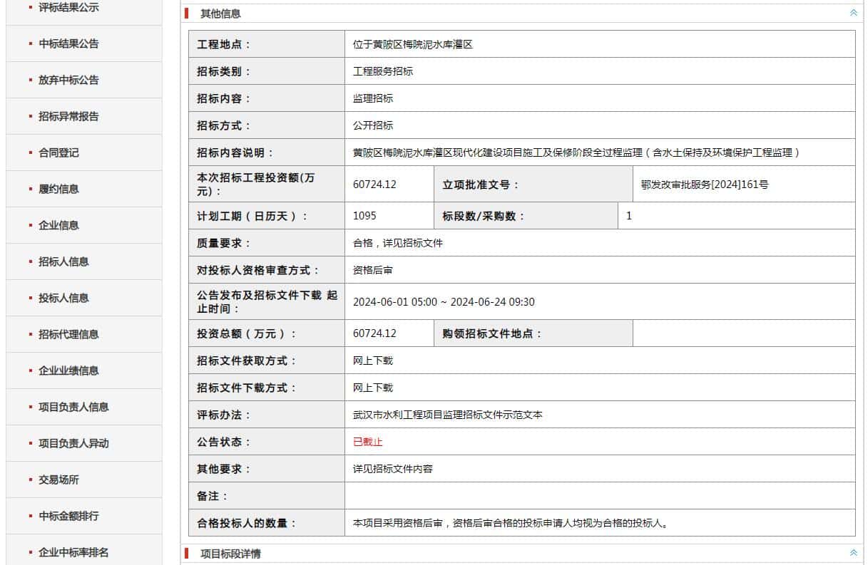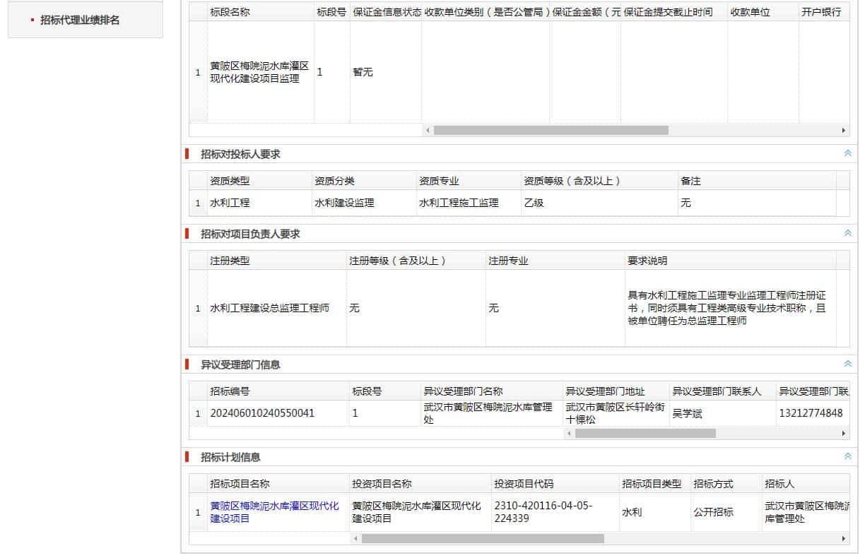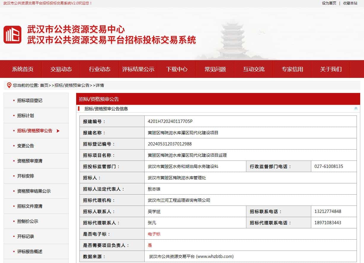 黄陂区梅院泥水库灌区现代化建设项目监理招标公告
