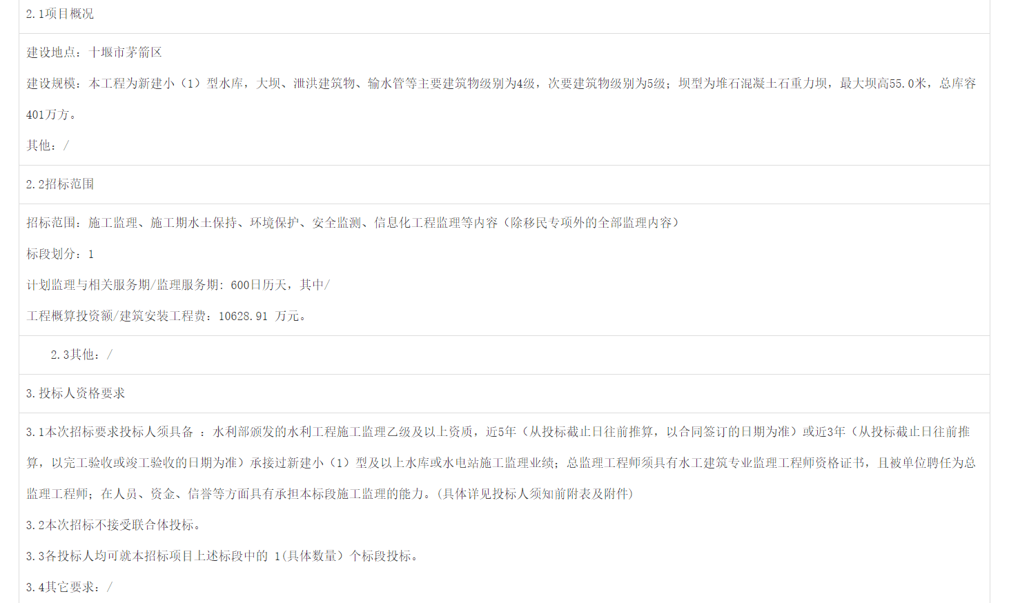 招标范围:施工监理、施工期水土保持、环境保护、安全监测、信息化工程监理等内容(除移民专项外的全部监理内容)