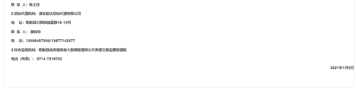 3.综合监管机构:阳新县政务服务和大数据管理局公共资源交易监督管理股