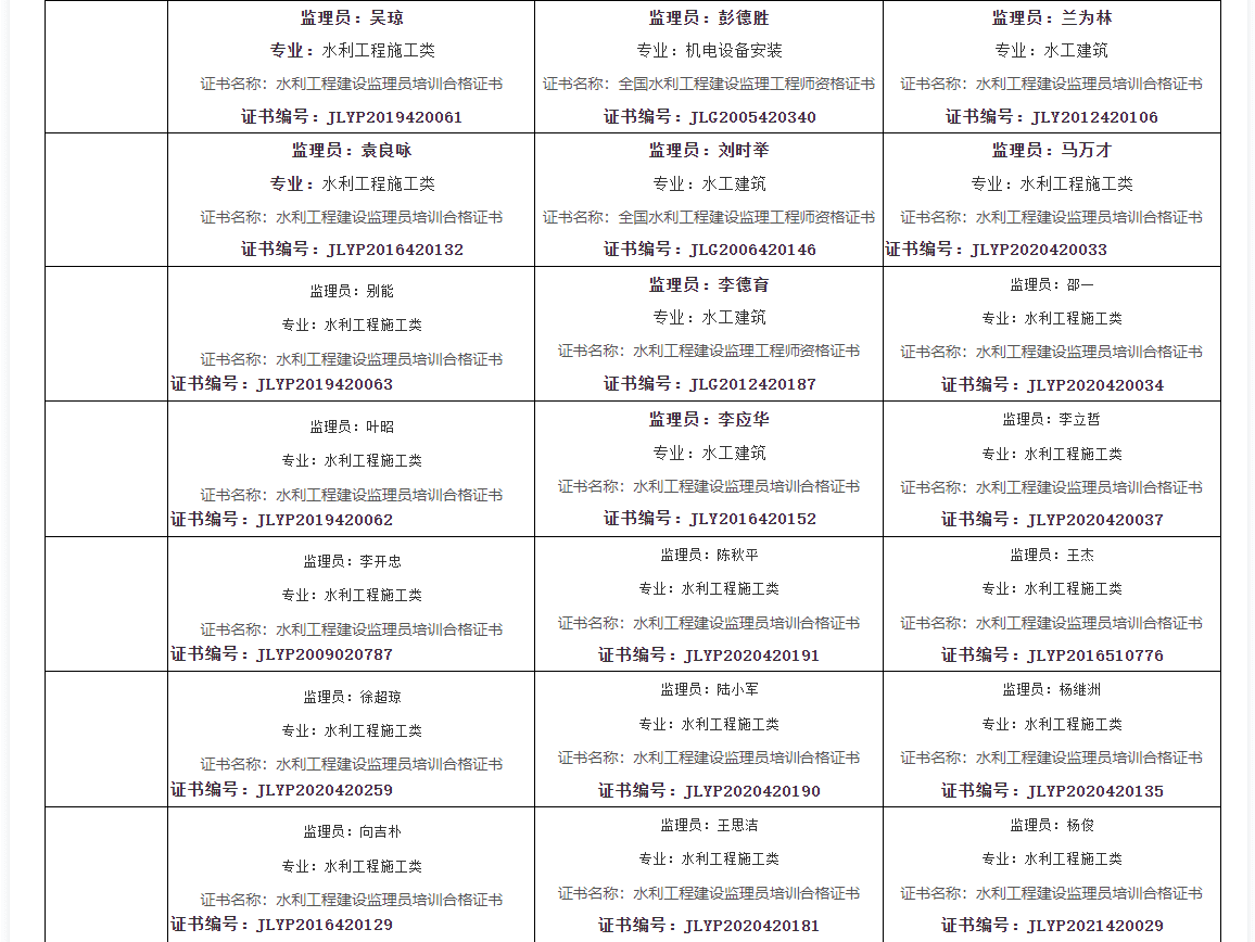 证书名称:全国水利工程建设监理工程师资格证书