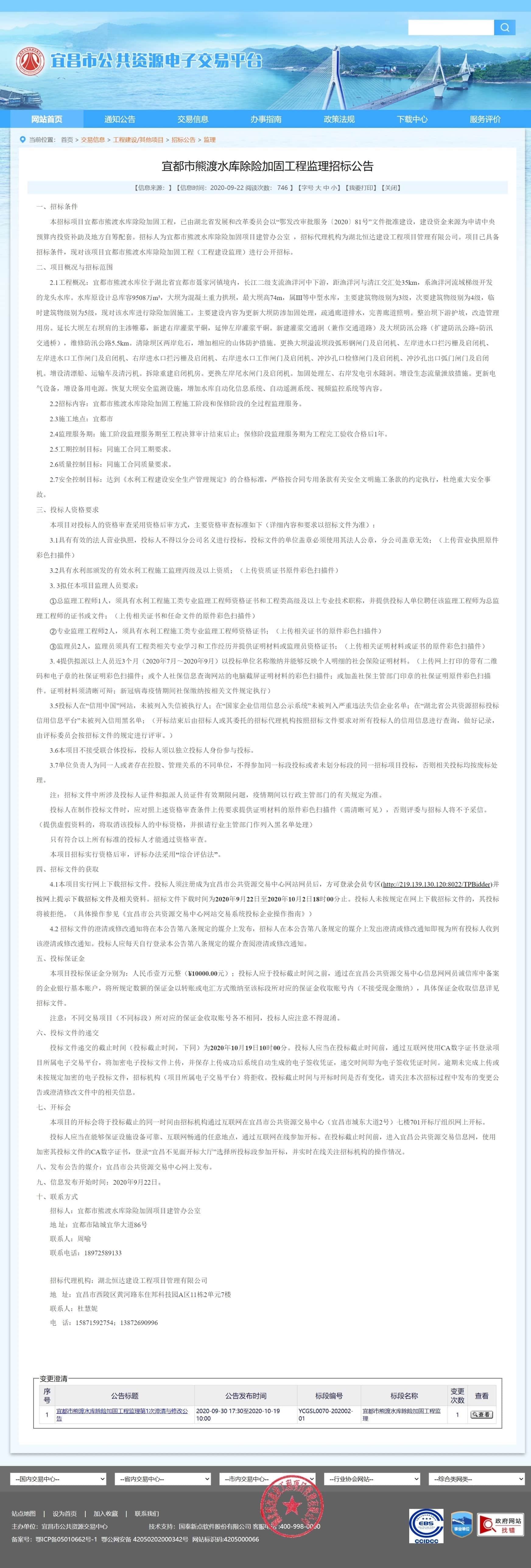 2.2招标内容:宜都市熊渡水库除险加固工程施工阶段和保修阶段的全过程监理服务。