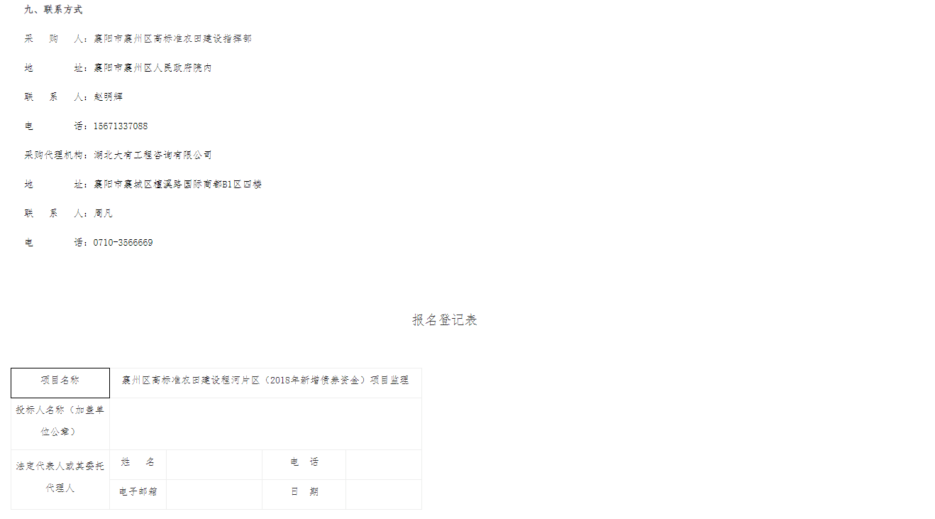 1.1项目名称:襄州区高标准农田建设程河片区(2018年新增债券资金)项目监理。