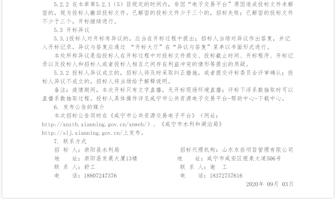 招 标 人:崇阳县水利局 招标代理机构:山东东岳项目管理有限公司