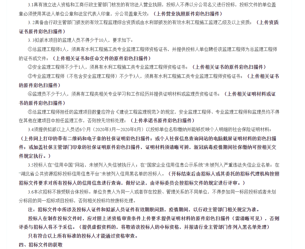 3. 2具备由行政主管部门颁发的有效工程监理综合资质或由水利部颁发的有效水利工程施工监理乙级及以上资质;(上传资质证书原件彩色扫描件)
