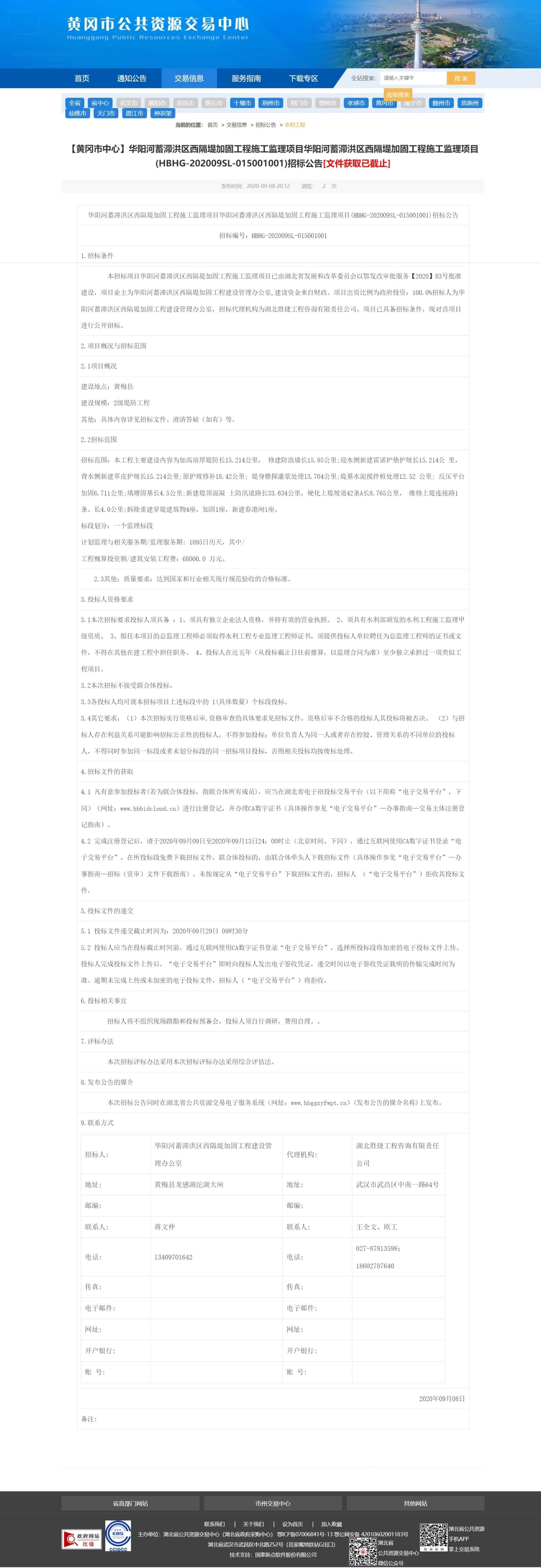【黄冈市中心】华阳河蓄滞洪区西隔堤加固工程施工监理项目华阳河蓄滞洪区西隔堤加固工程施工监理项目(HBHG-202009SL-015001001)招标公告[文件获取已截止]