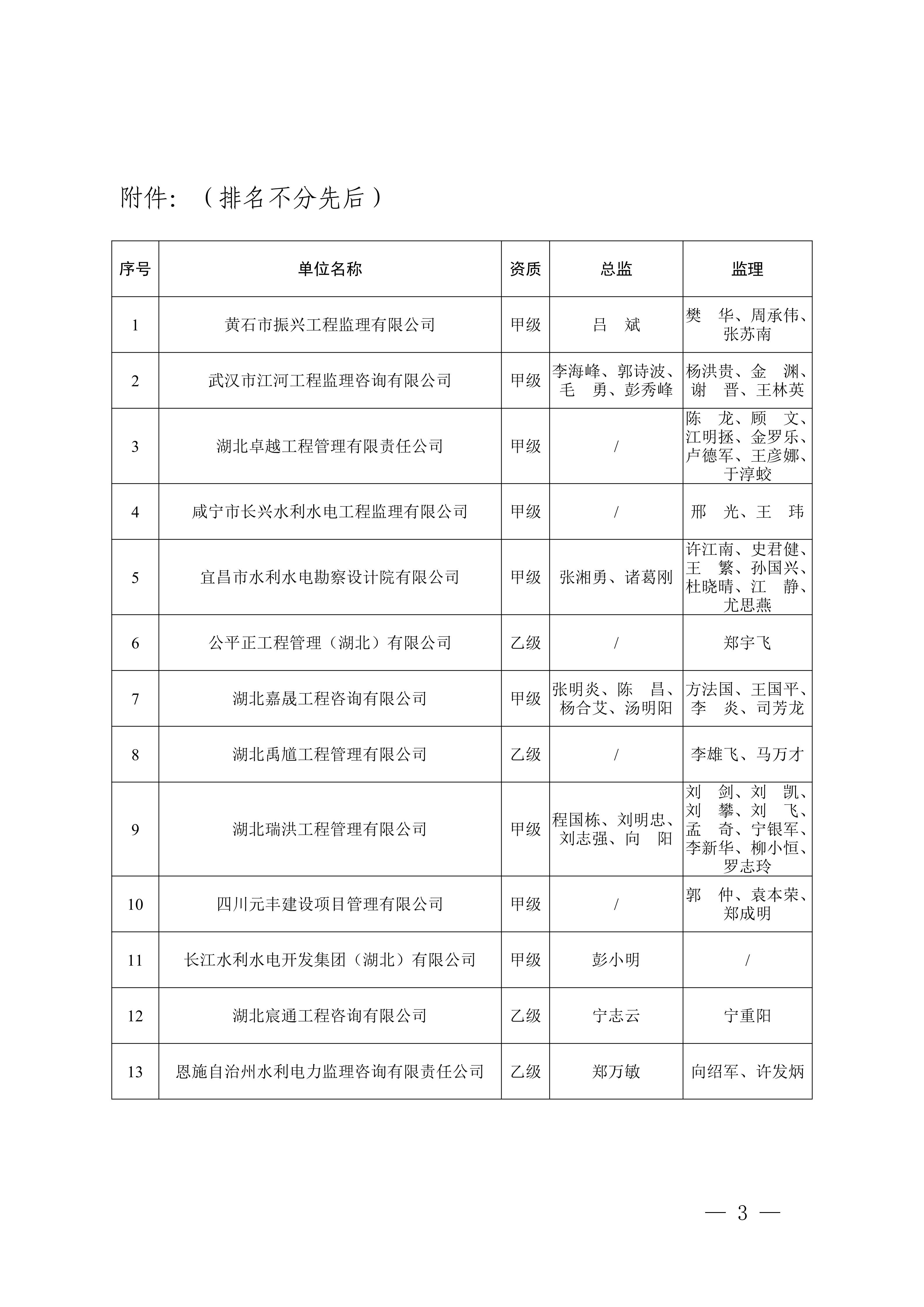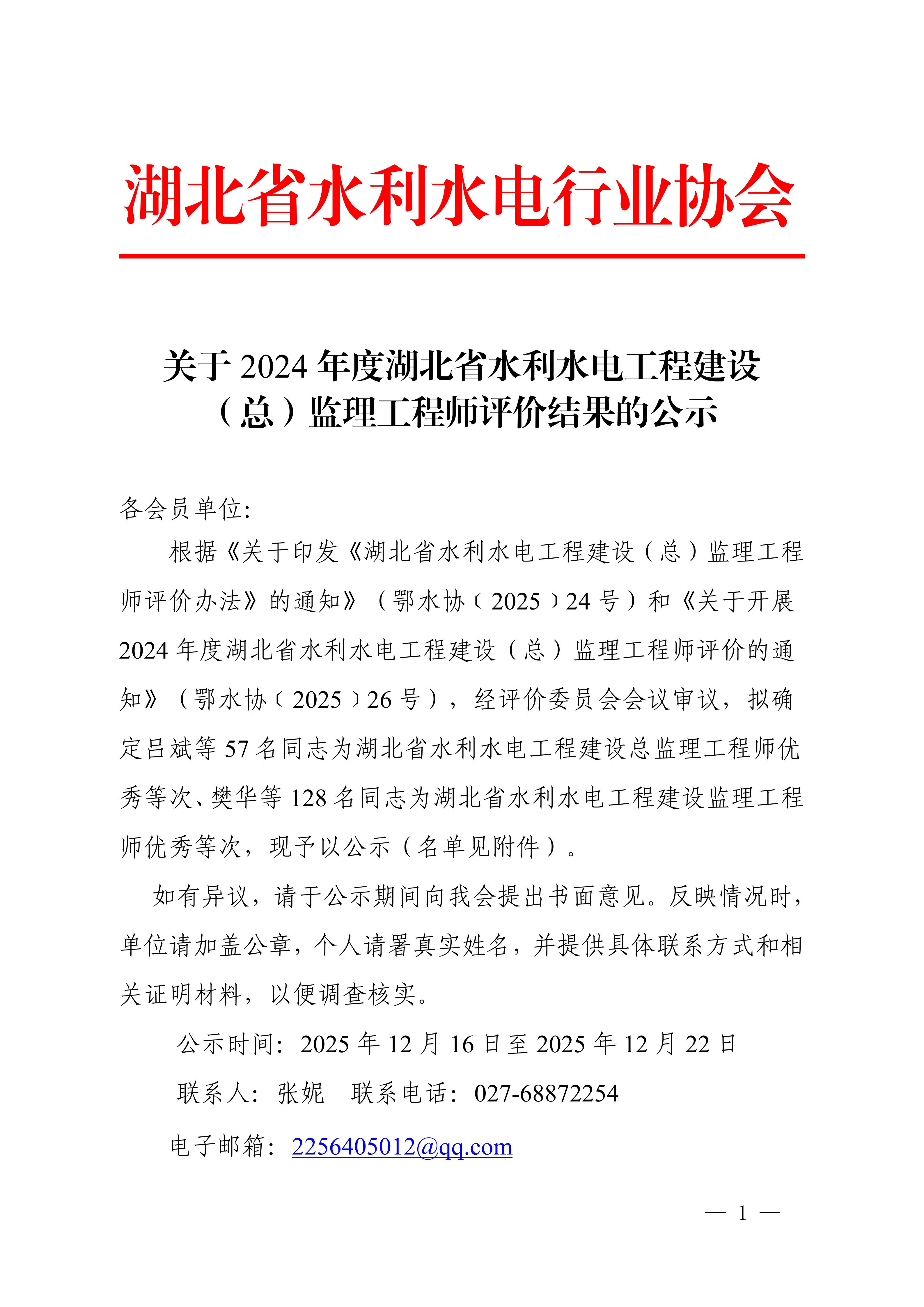 关于2024年度湖北省水利水电工程建设(总)监理工程师评价结果的公示