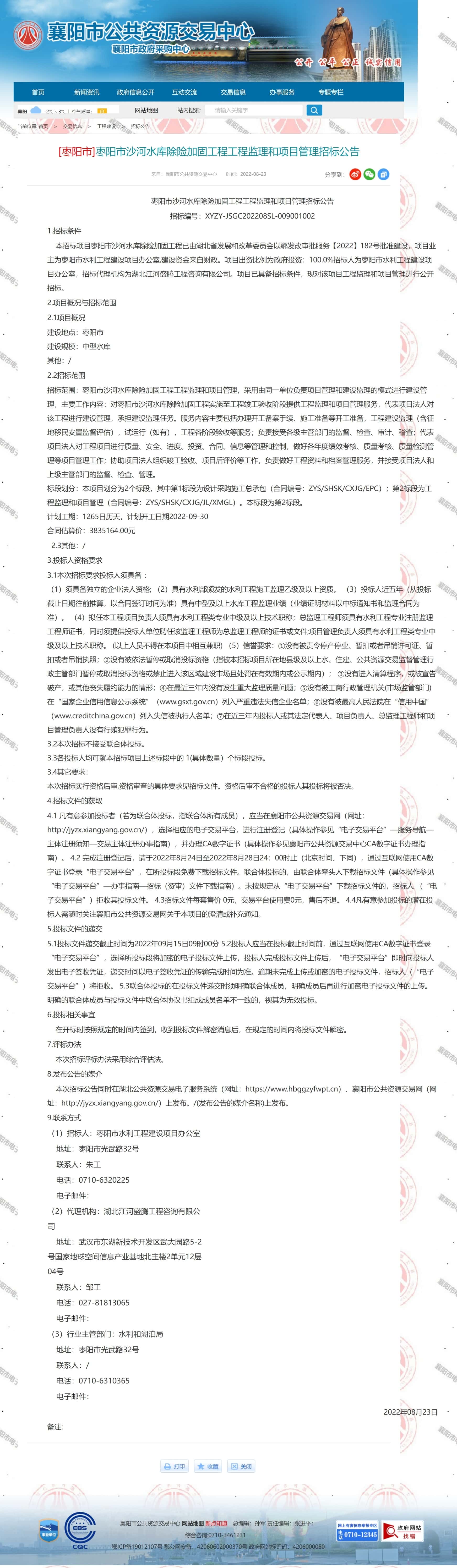 (1)招标人:枣阳市水利工程建设项目办公室