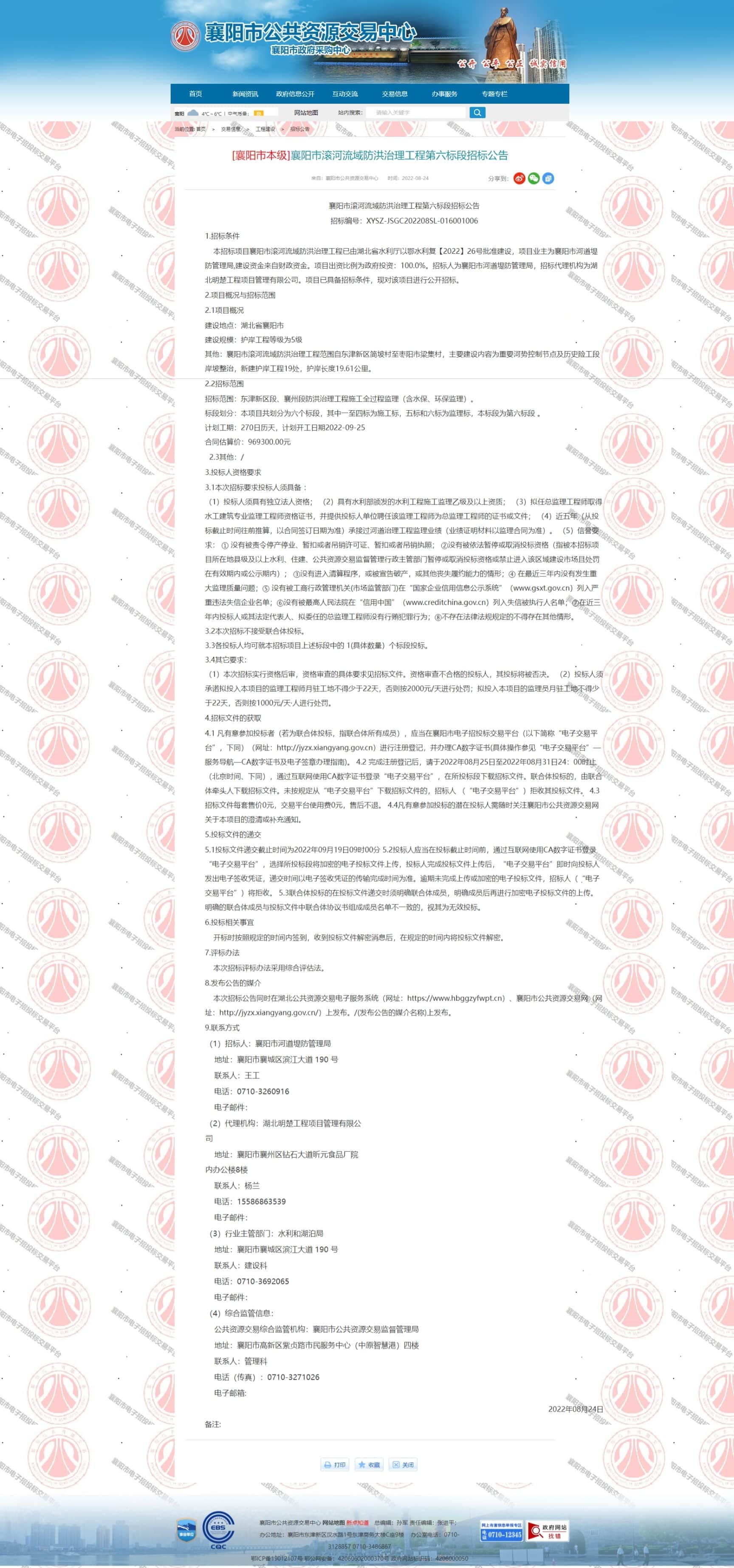 [襄阳市本级]襄阳市滚河流域防洪治理工程第六标段招标公告