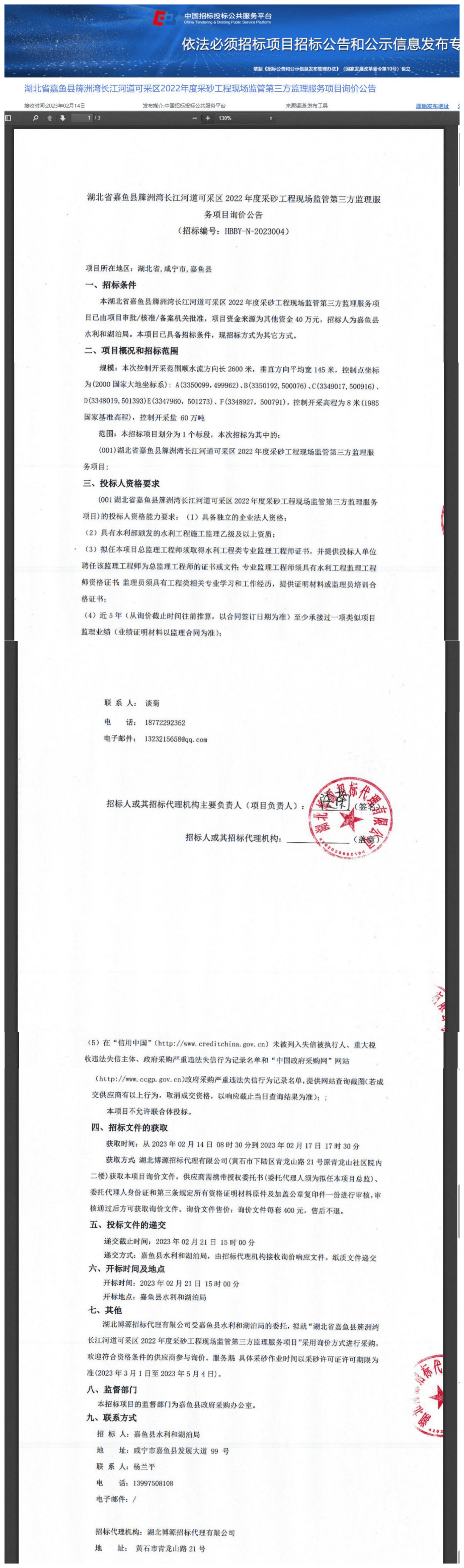 湖北省嘉鱼县簰洲湾长江河道可采区2022年度采砂工程现场监管第三方监理服务项目询价公告