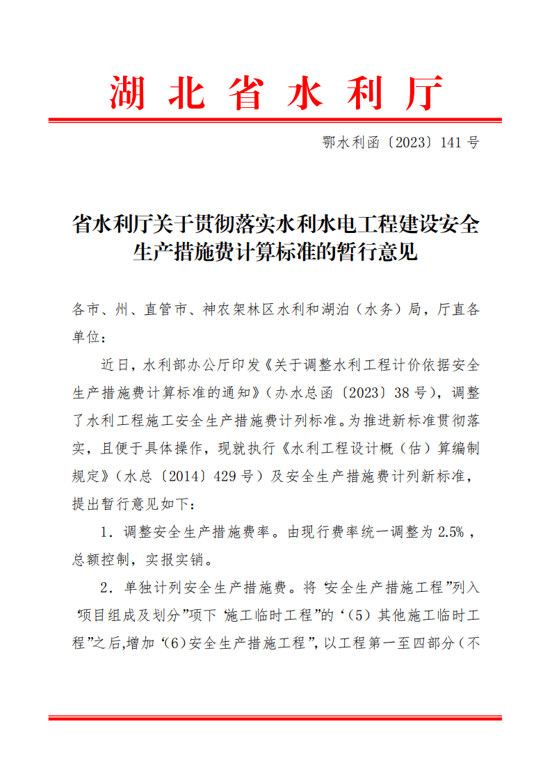 鄂水利函〔2023〕141 号