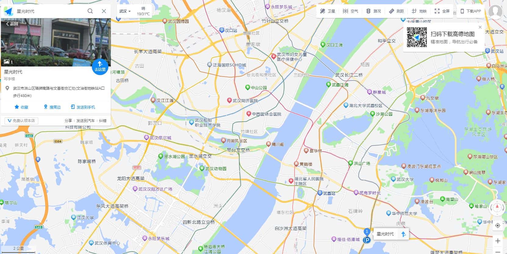 路线1(驾车):各类地图导航软件导航——星光时代东北门(武汉市洪山区)
