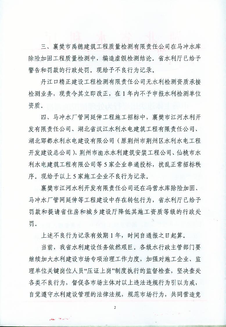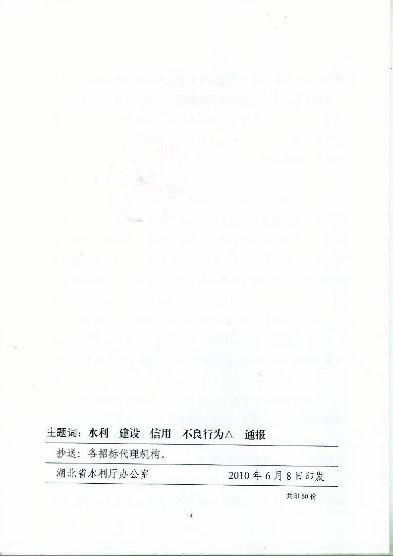 关于公布2010年湖北省水利水电建设市场主体信用等级的通知