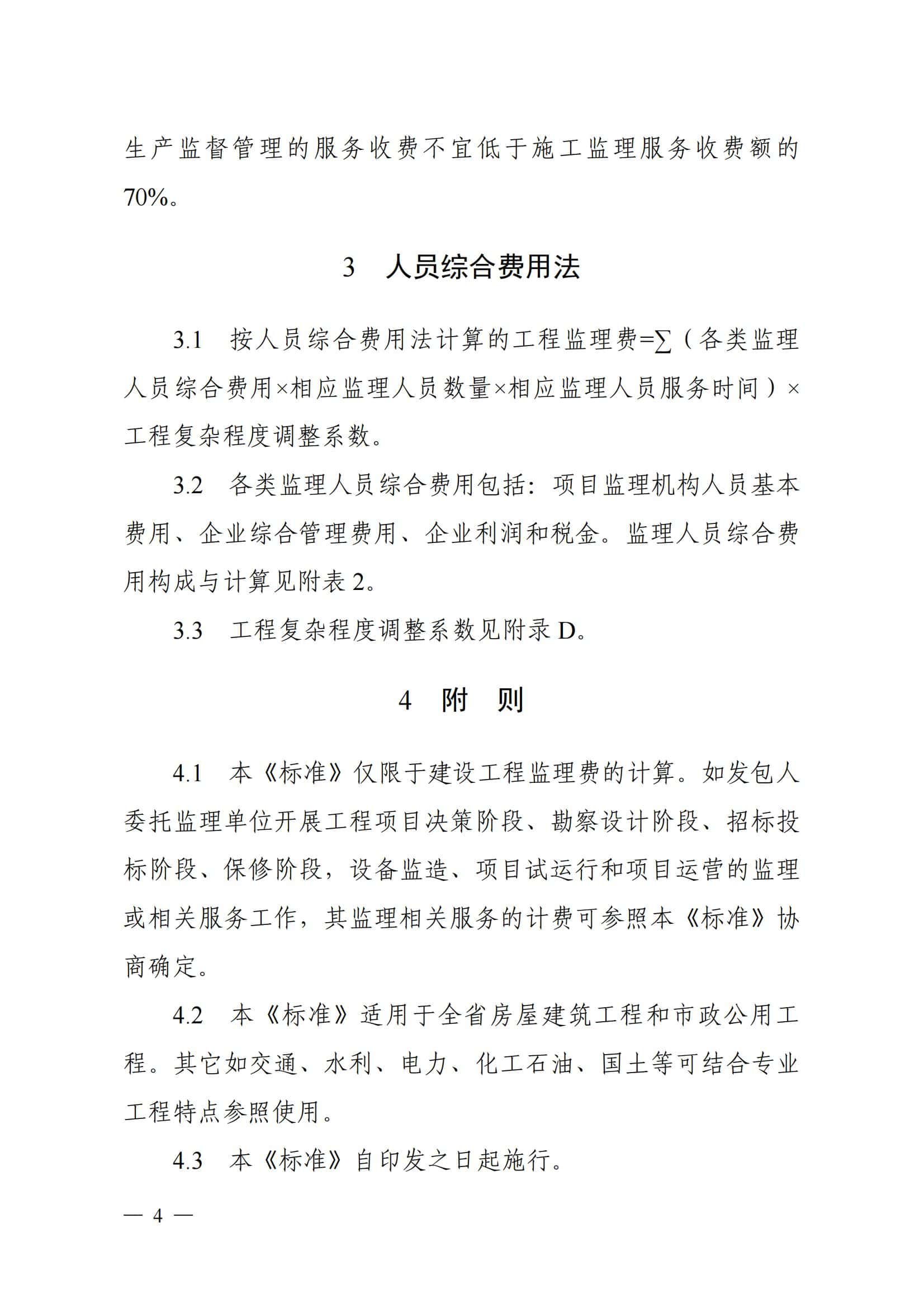 第四部分为附则。明确房屋建筑和市政公用工程以外相关服务,如项目代建、电力及化工等相关专业监理工作的计费可以参考本参考标准使用,从而为更多监理相关服务工作计费提供借鉴。