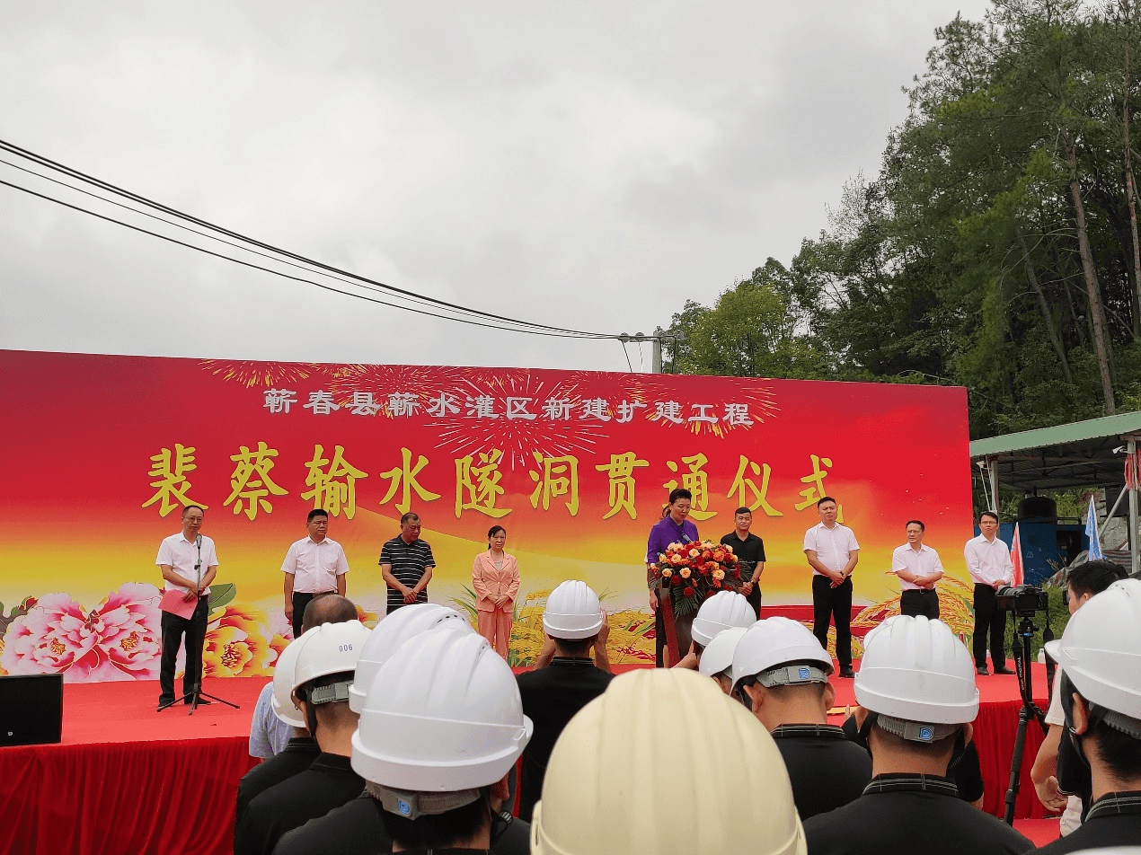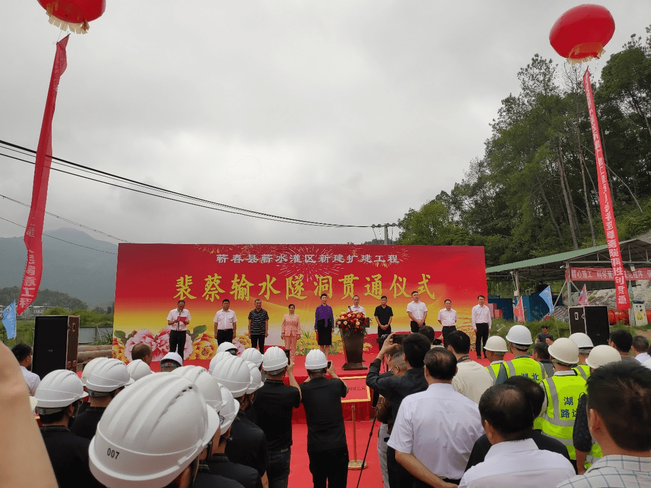 裴蔡隧洞全长4115米,是蕲水灌区实现大同片区和花园片区互联互通的关键工程,也是蕲春水网建设的一项重要节点工程。裴蔡隧洞自2022年3月23日开始动工建设,历经550余天分头掘进,较原定计划提前180天实现贯通,它不仅创造蕲春水利隧洞长度之最,也是全县隧洞长度之最。
