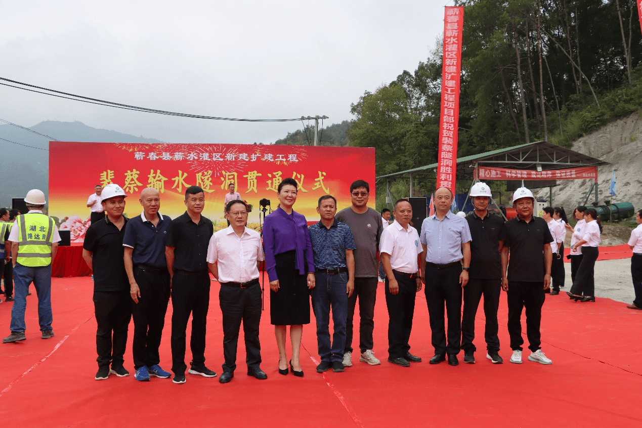在2023年中秋、国庆双节即将来临之际,由湖北水总承建的蕲春县蕲水灌区新建扩建工程裴蔡隧洞于9月26日安全顺利贯通。蕲春县副县长李链稳、主任吕卫军,省水院党委委员,总经济师曾庆堂,湖北水总党委书记、董事长李红辉,总经理甘维忠等领导出席仪式。贯通仪式由县水利局局长周华荣主持。