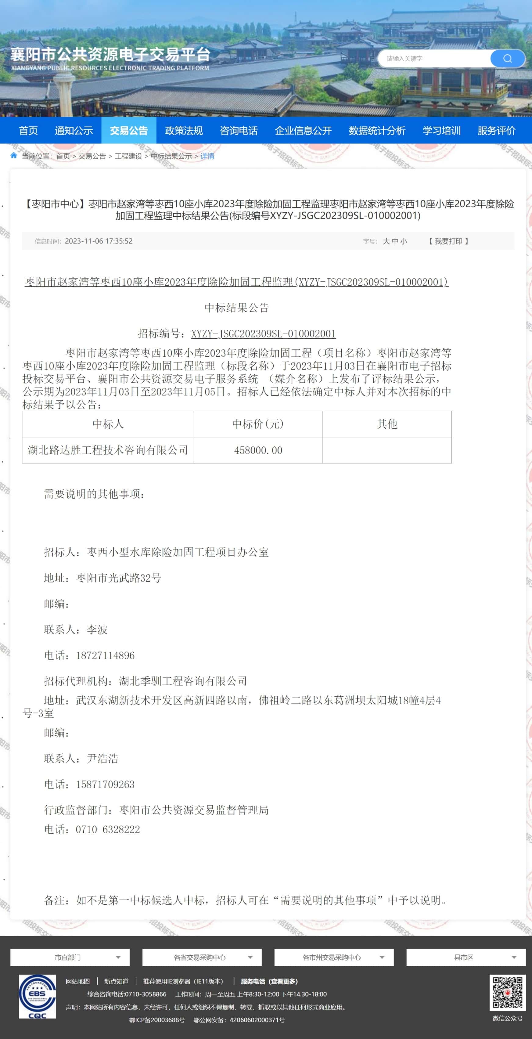 行政监督部门:枣阳市公共资源交易监督管理局