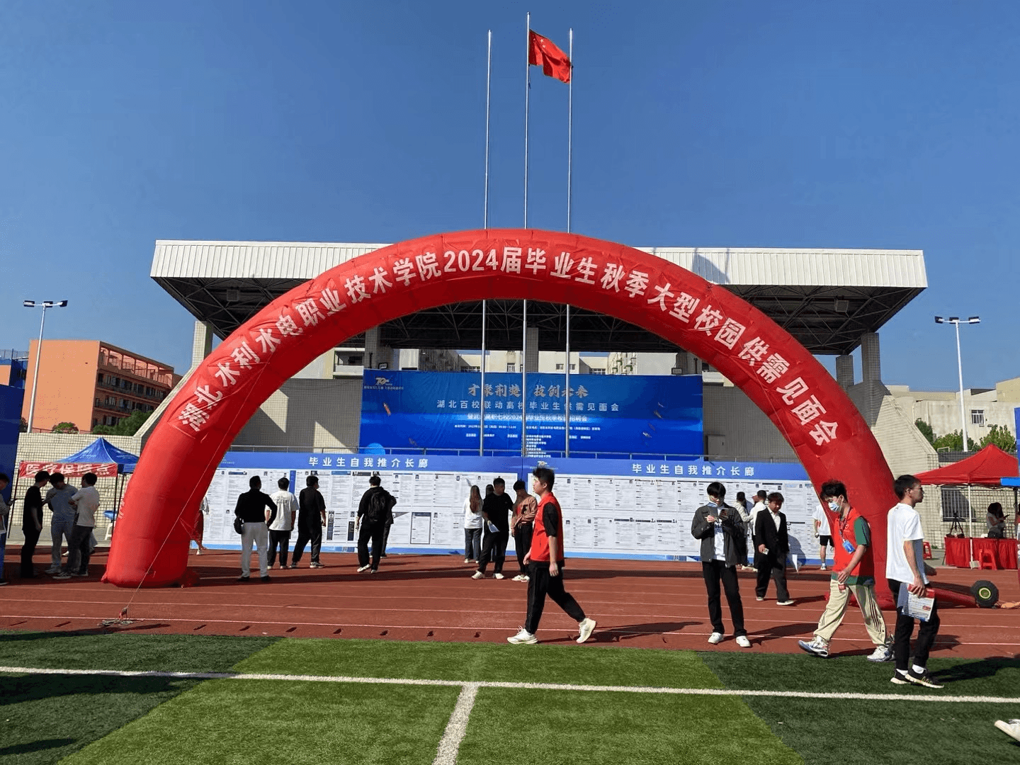 2023年11月2日,湖北百校联动高校毕业生供需见面会暨“才聚荆楚 技创未来”七校联合秋季招聘会在湖北水利水电职业技术学院(汤逊湖校区)足球场如期举行。