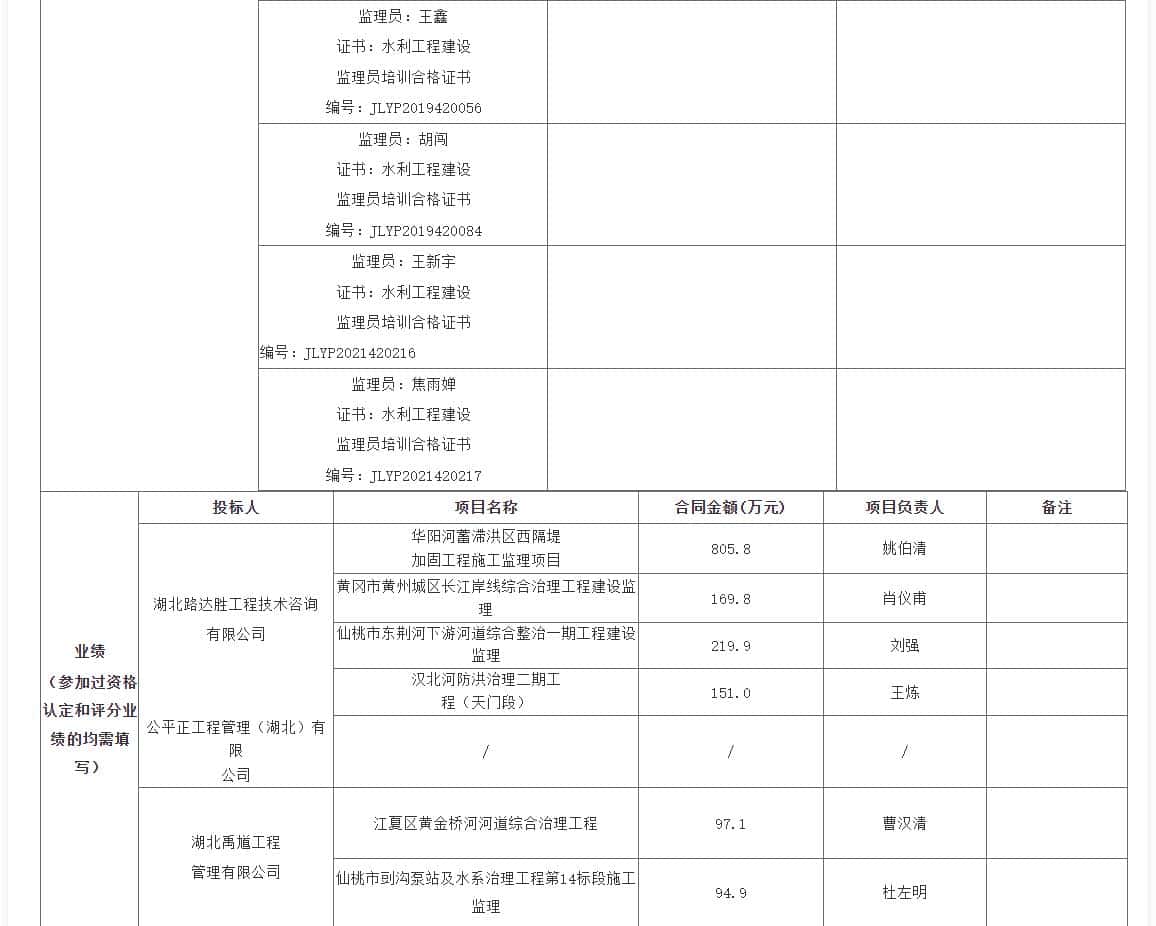 第一中标候选人:湖北路达胜工程技术咨询有限公司