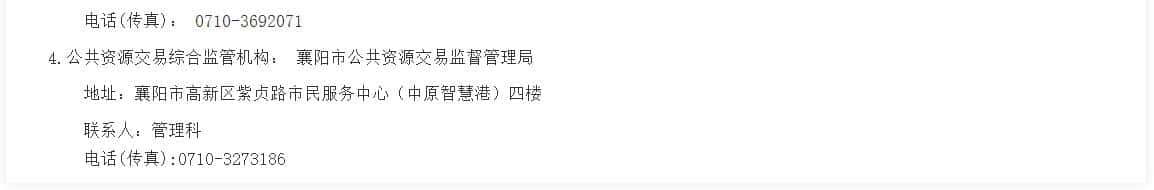 4.公共资源交易综合监管机构:襄阳市公共资源交易监督管理局