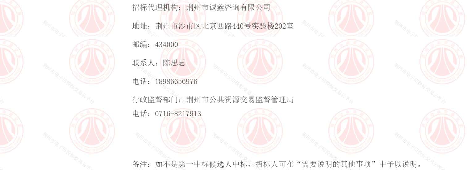 | 招标代理机构:荆州市诚鑫咨询有限公司 | |||||||