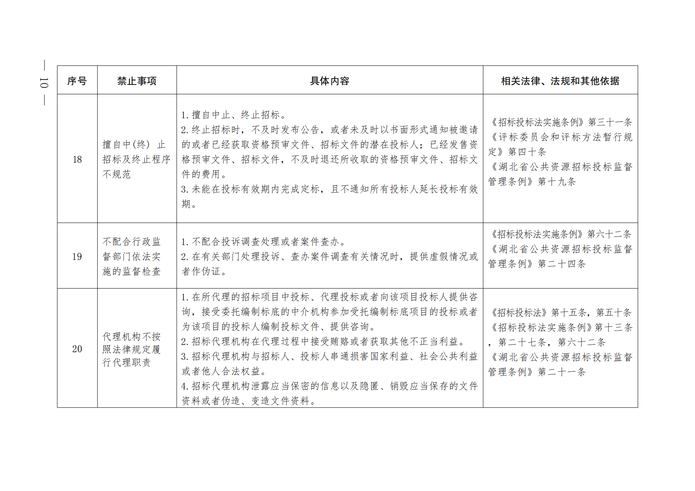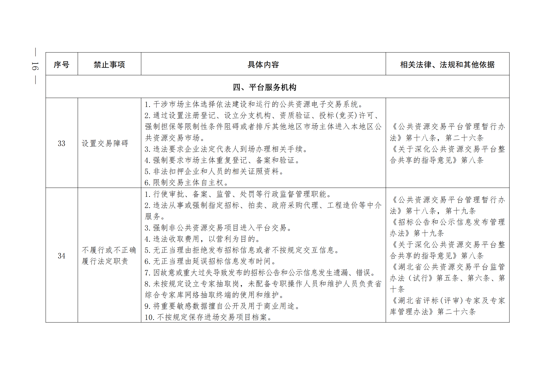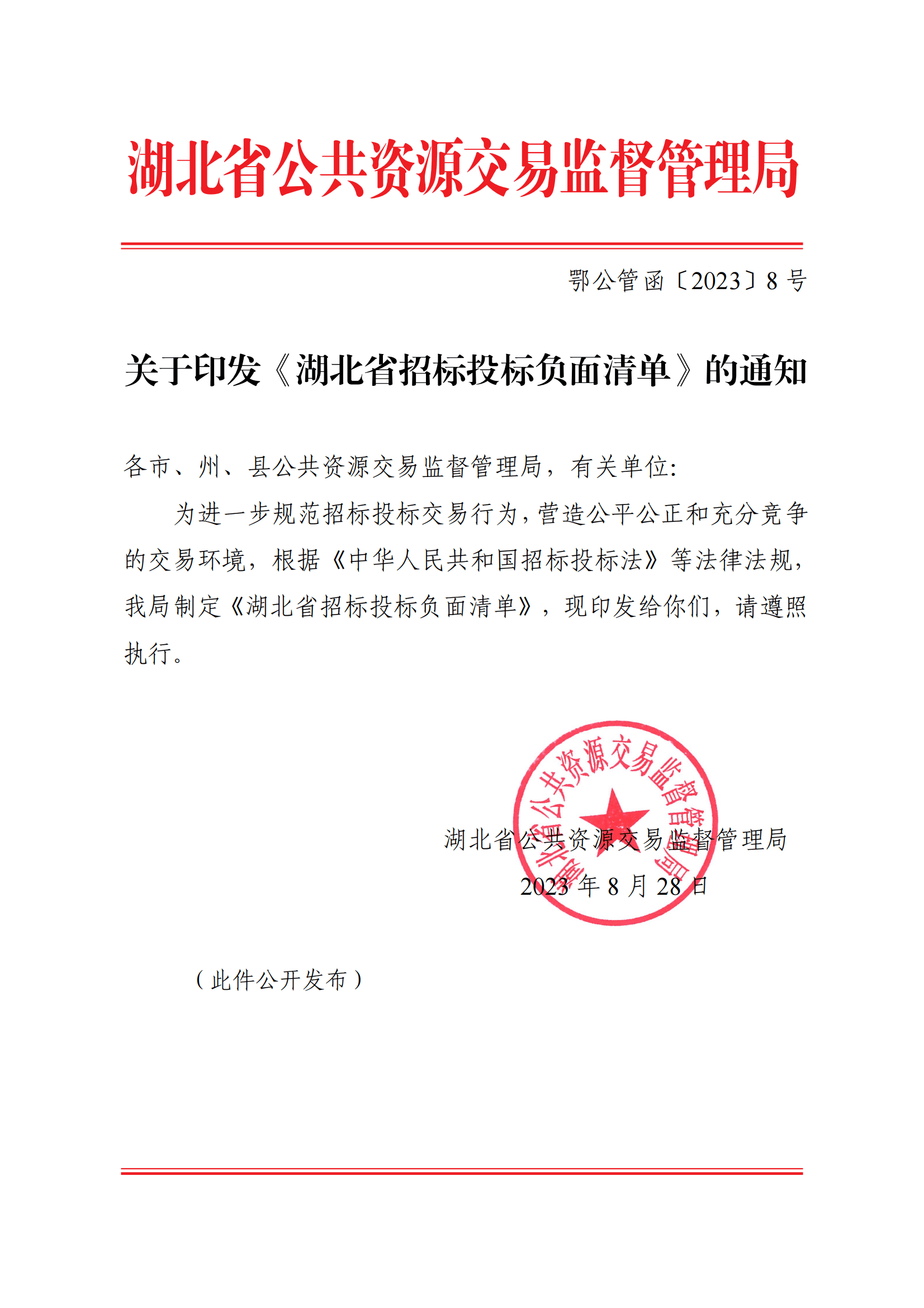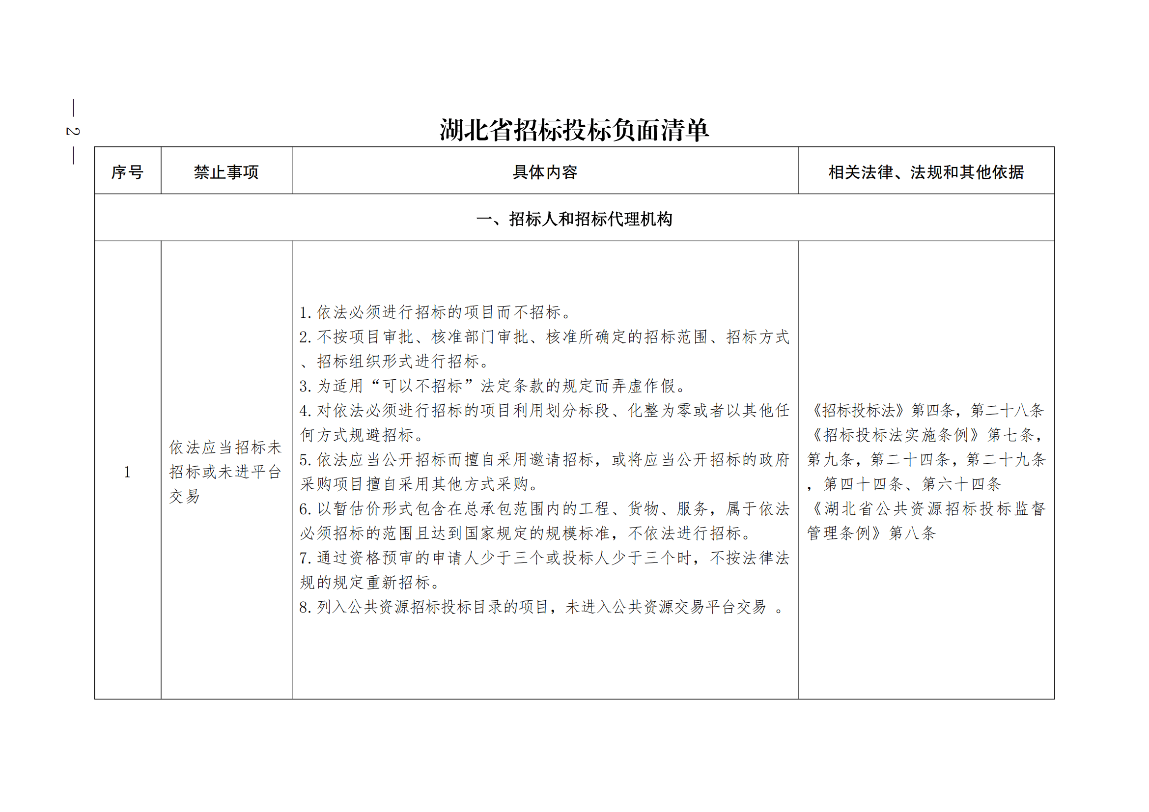 湖北省公共资源监督管理局关于印发《湖北省招标投标负面清单》的通知