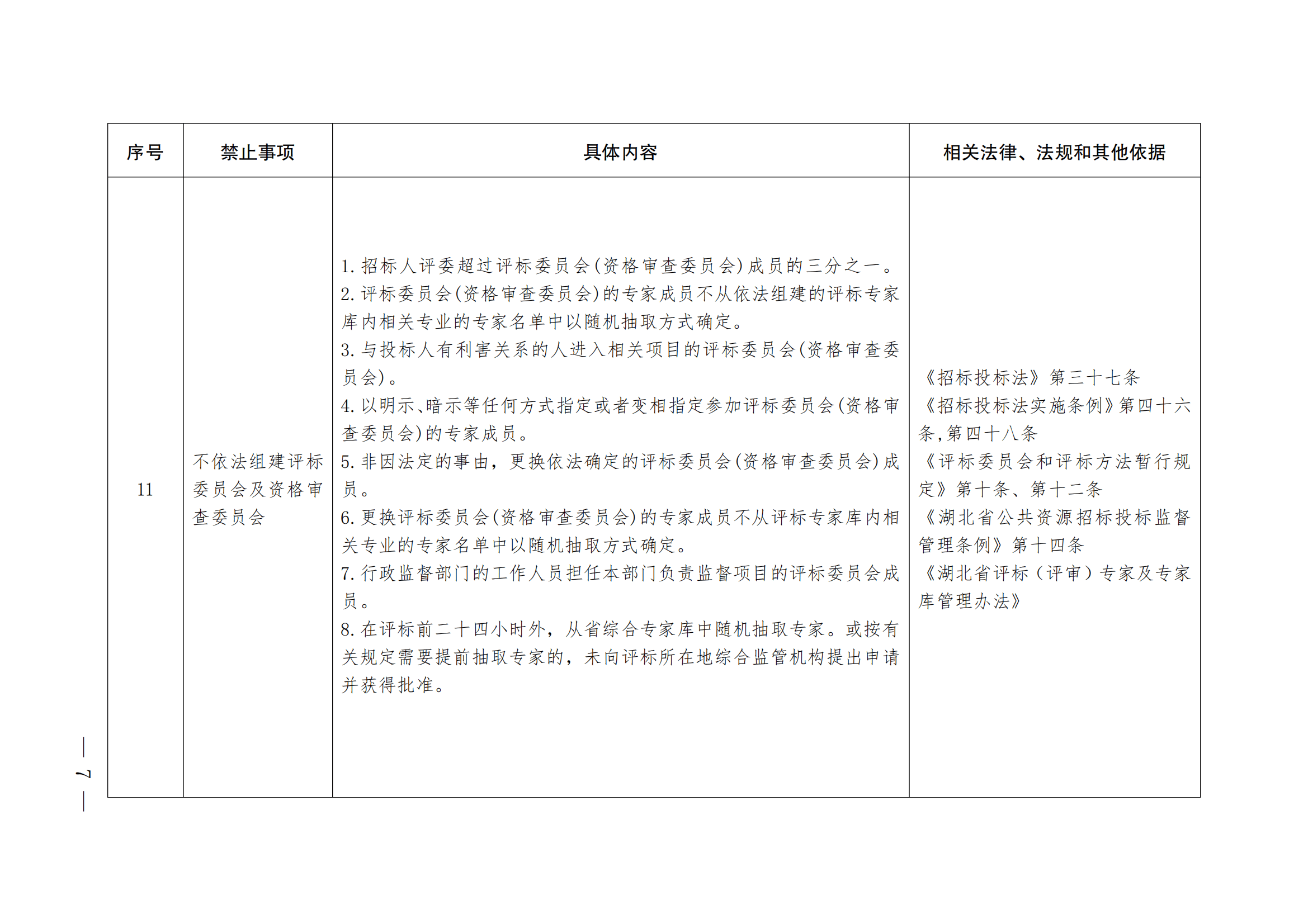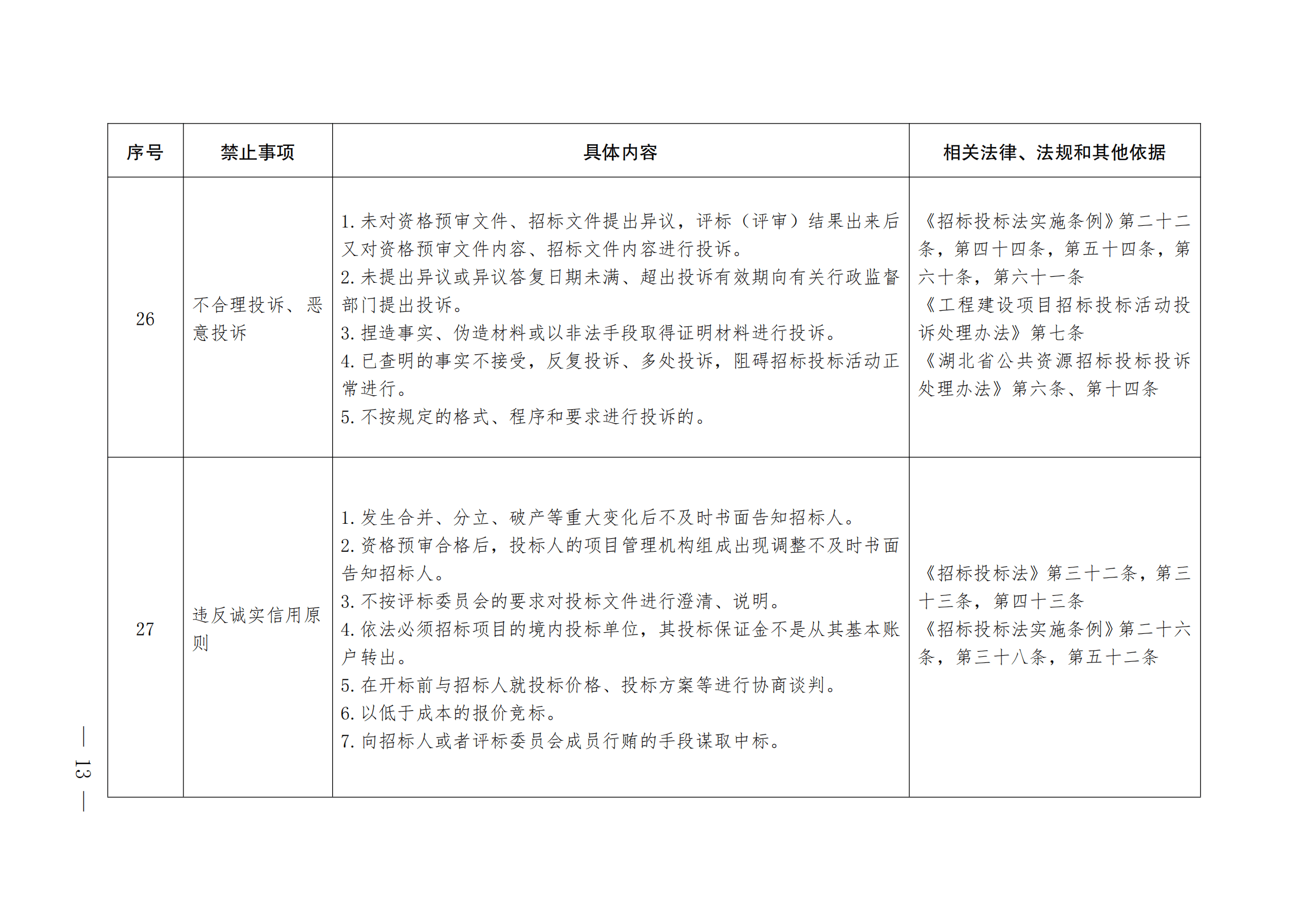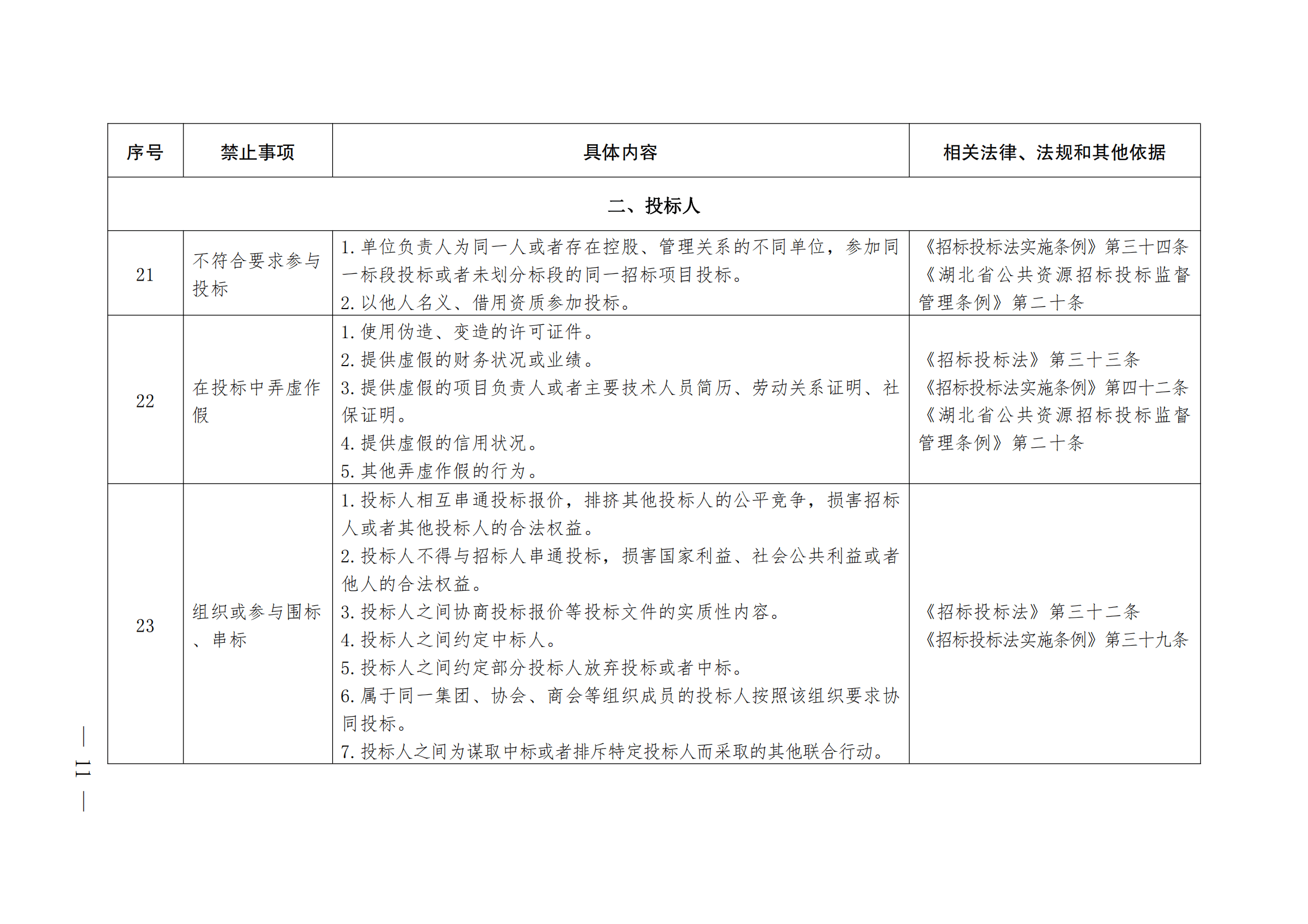 湖北省公共资源监督管理局关于印发《湖北省招标投标负面清单》的通知