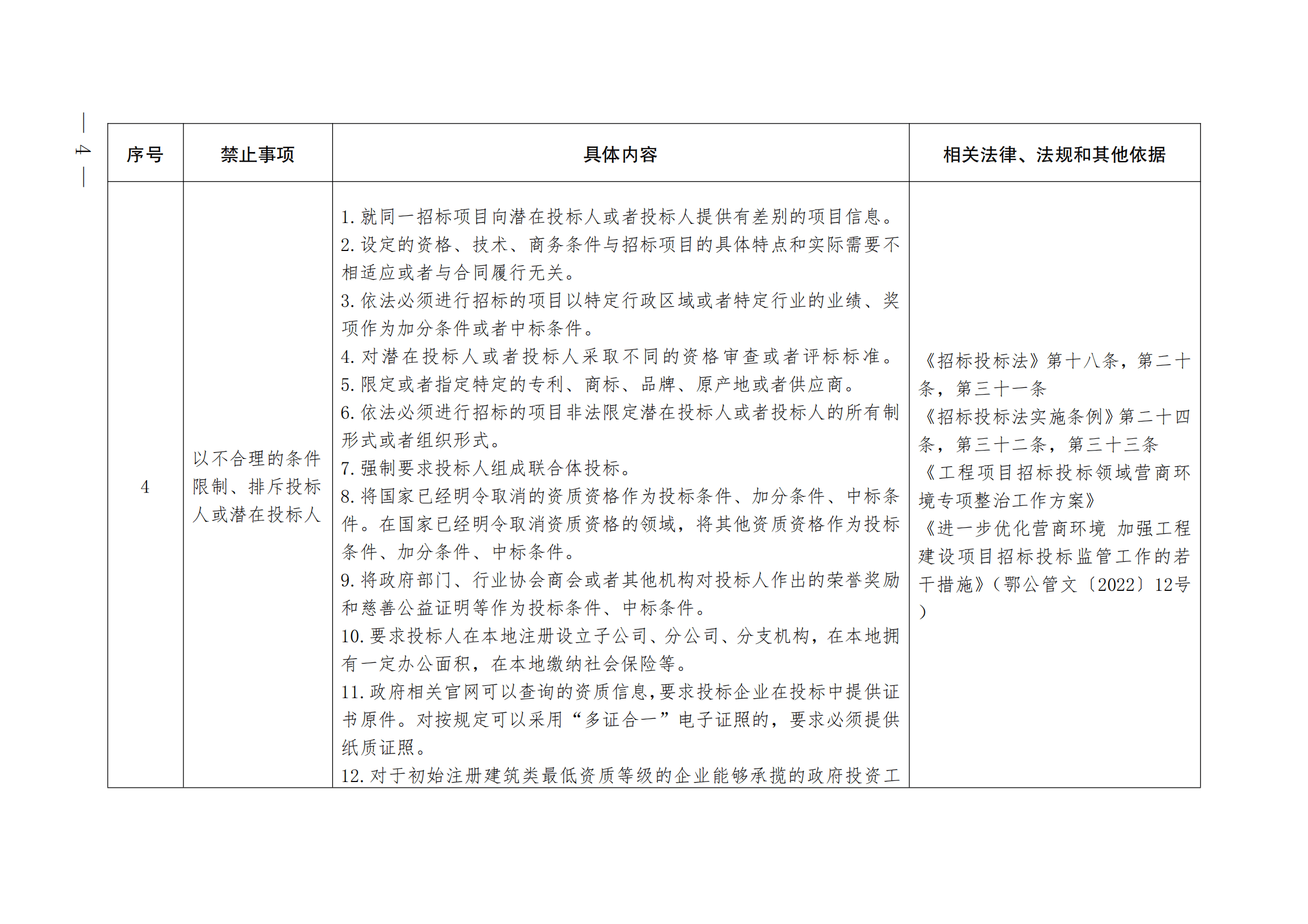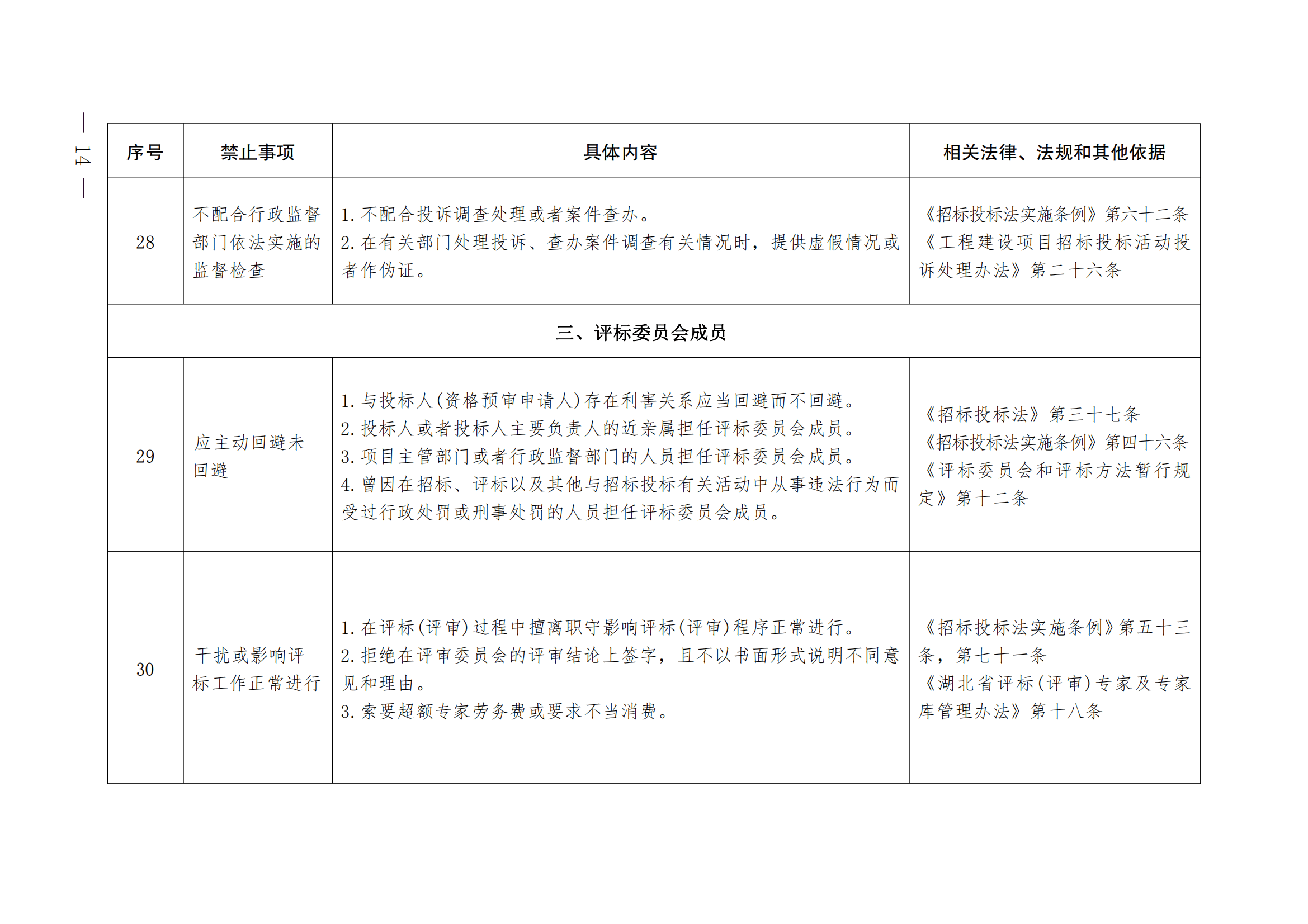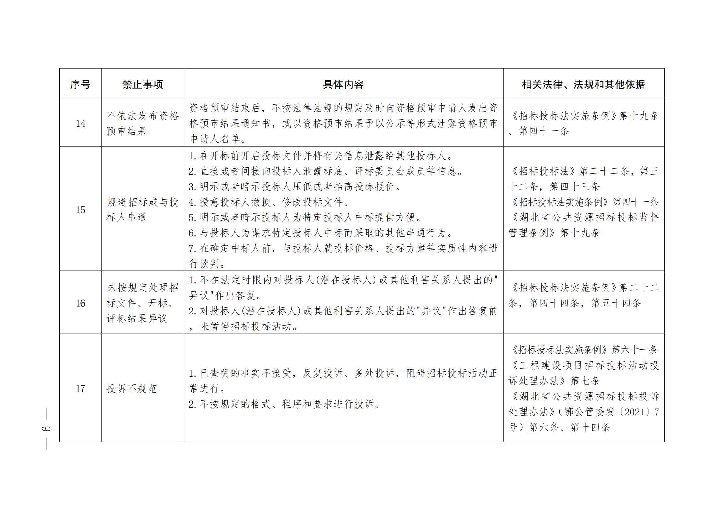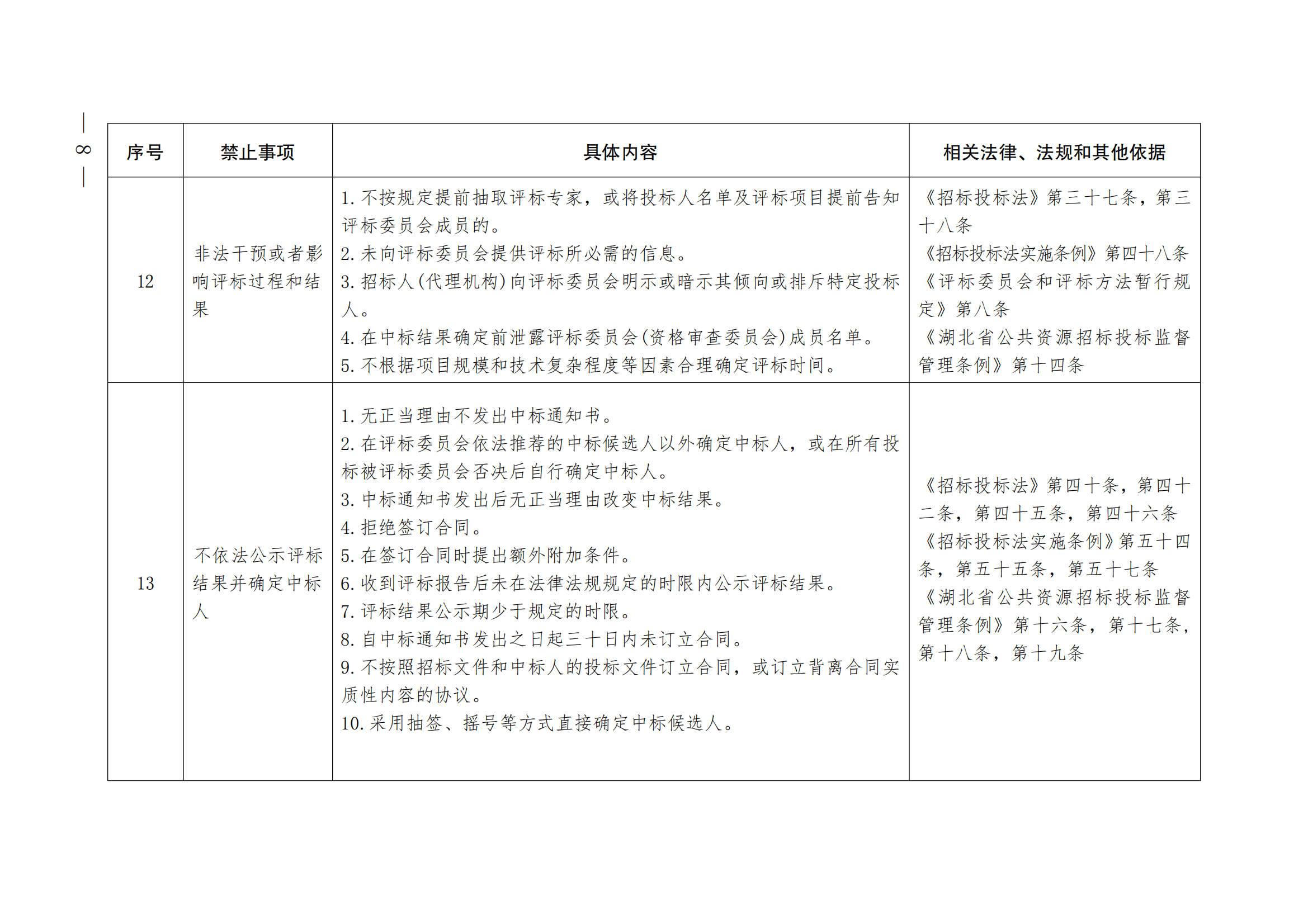 湖北省公共资源监督管理局关于印发《湖北省招标投标负面清单》的通知