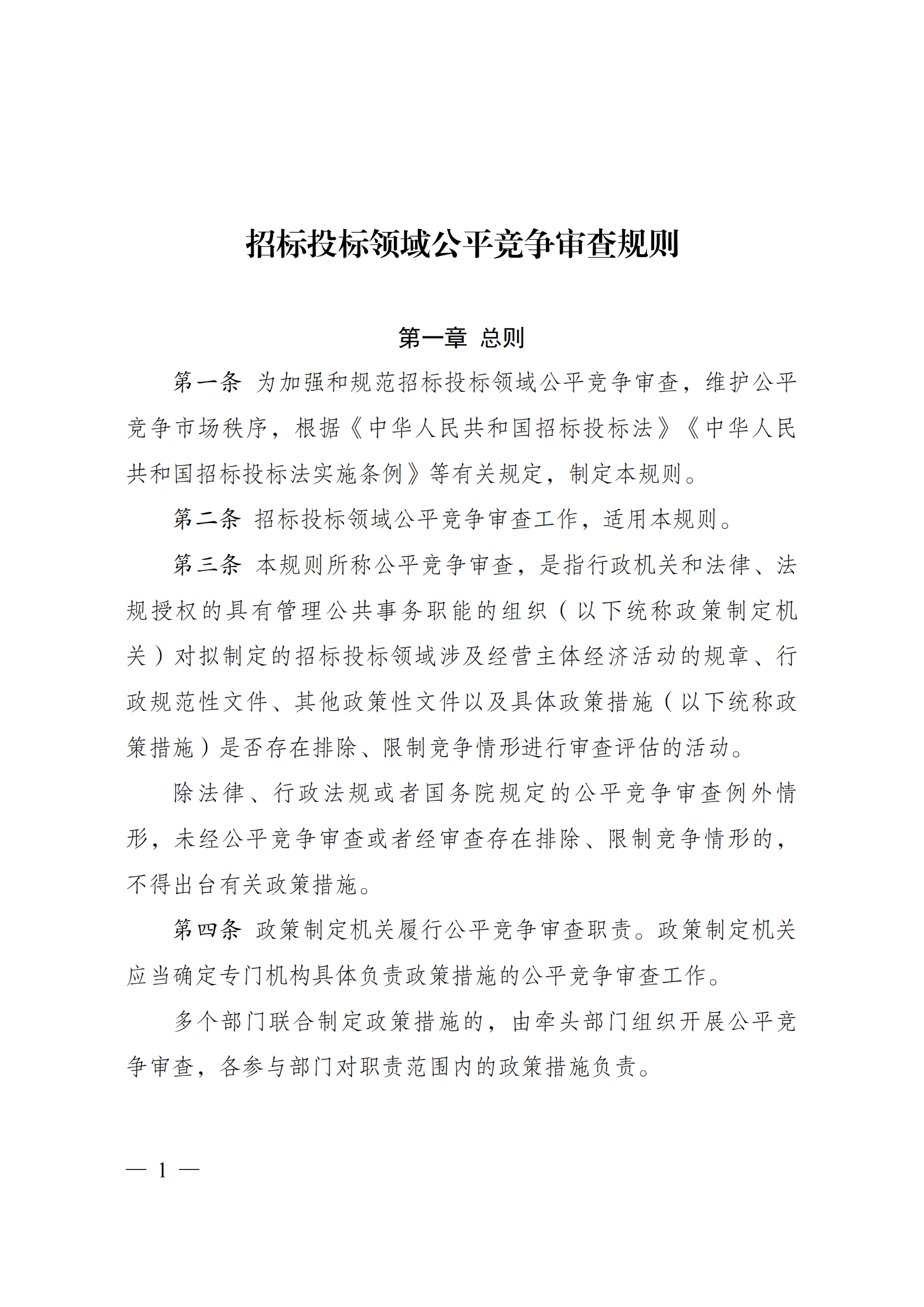 第一条 为加强和规范招标投标领域公平竞争审查,维护公平竞争市场秩序,根据《中华人民共和国招标投标法》《中华人民共和国招标投标法实施条例》等有关规定,制定本规则。