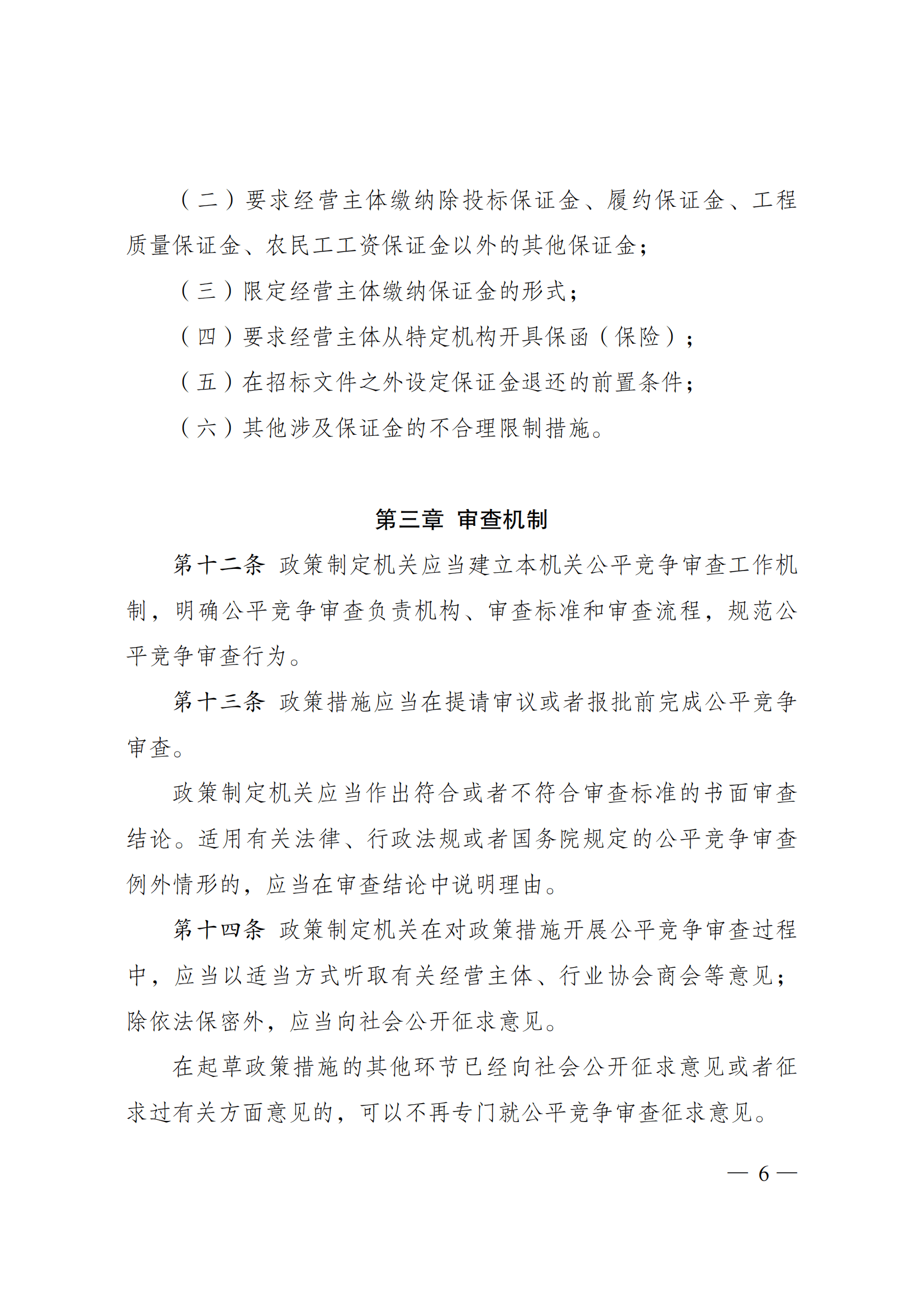 第十一条 政策制定机关制定涉及保证金的政策措施,不得设置以下不合理限制: