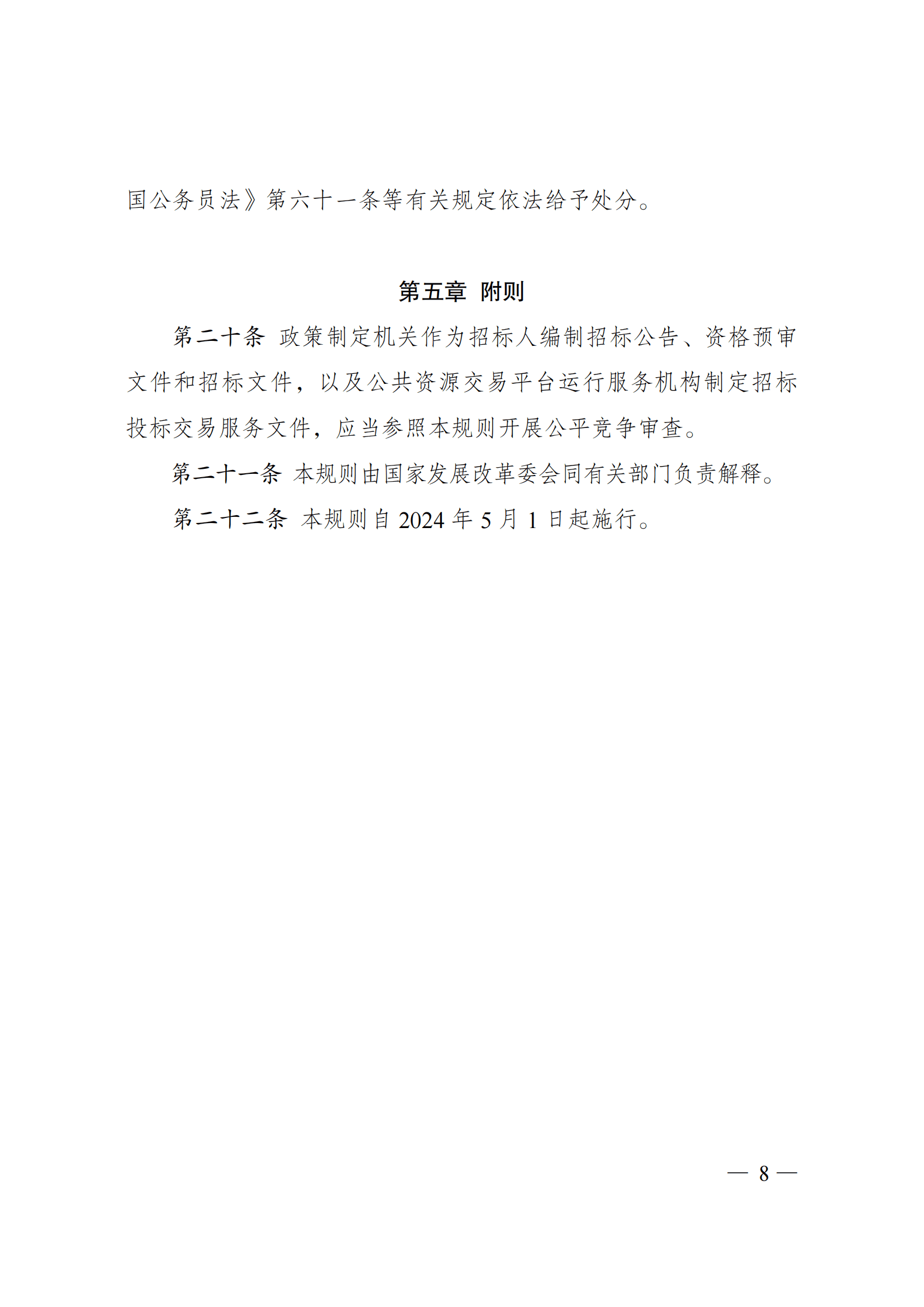 《招标投标领域公平竞争审查规则》已经2024年1月31日第8次委务会议审议通过,现予公布,自2024年5月1日起施行。
