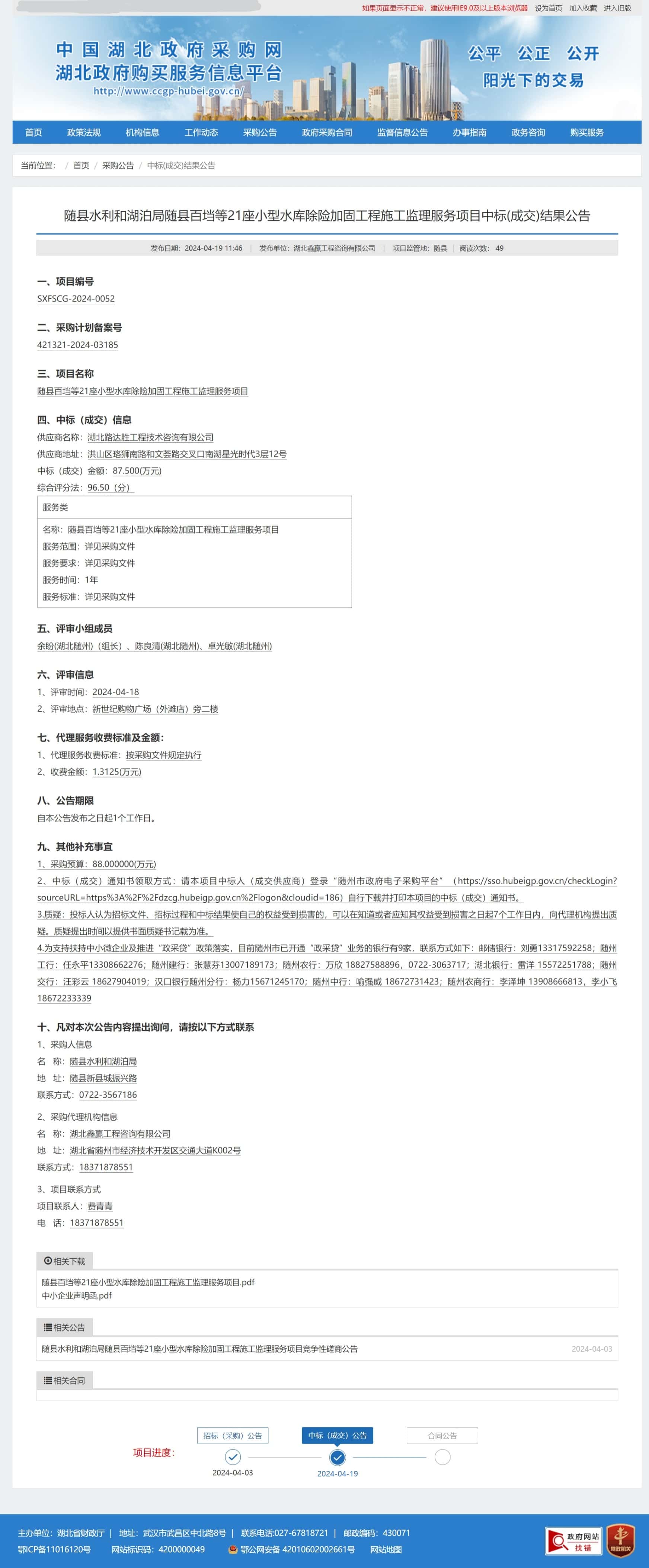 中标(成交)金额:87.500(万元)