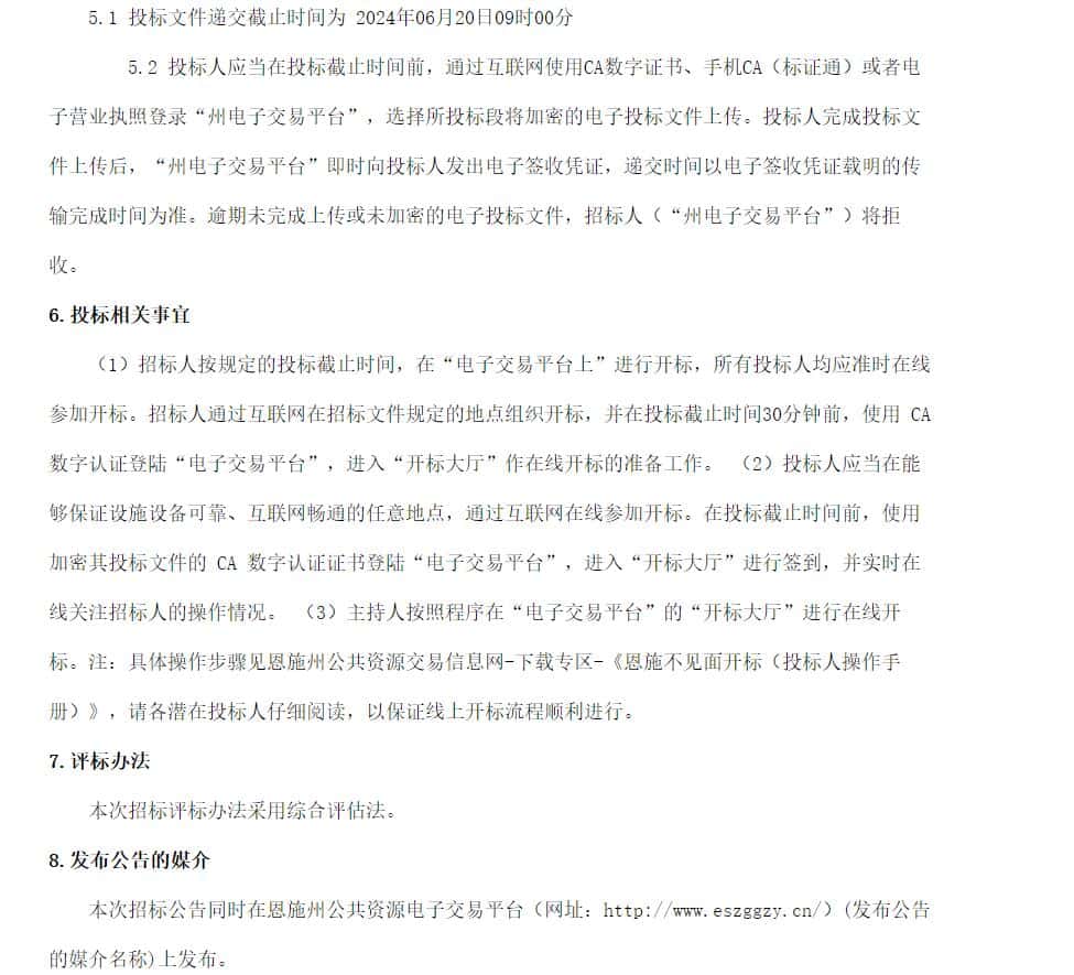 本次招标公告同时在恩施州公共资源电子交易平台(网址:http://www.eszggzy.cn/)(发布公告的媒介名称)上发布。