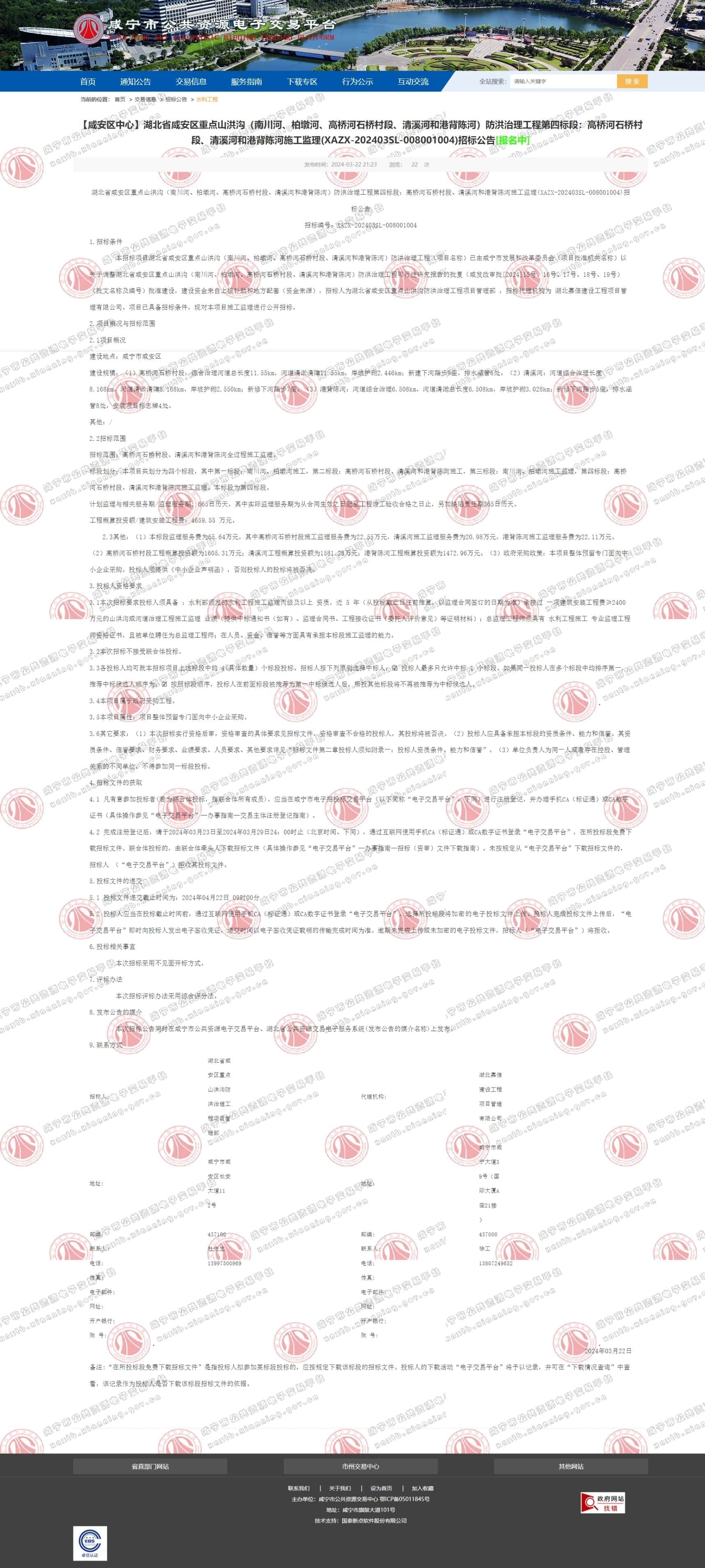 【咸安区中心】湖北省咸安区重点山洪沟(南川河、柏墩河、高桥河石桥村段、清溪河和港背陈河)防洪治理工程第四标段:高桥河石桥村段、清溪河和港背陈河施工监理(XAZX-202403SL-008001004)招标公告