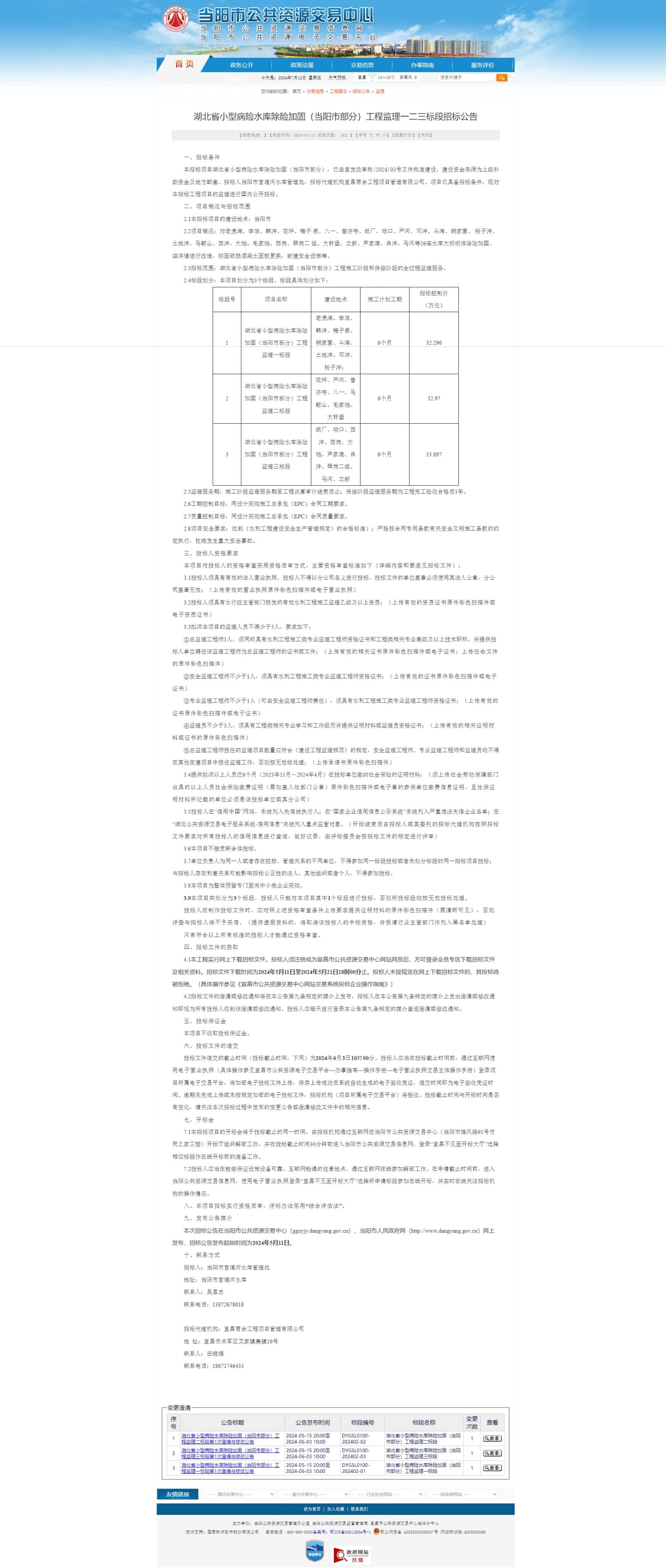 湖北省小型病险水库除险加固(当阳市部分)工程监理一标段招标公告