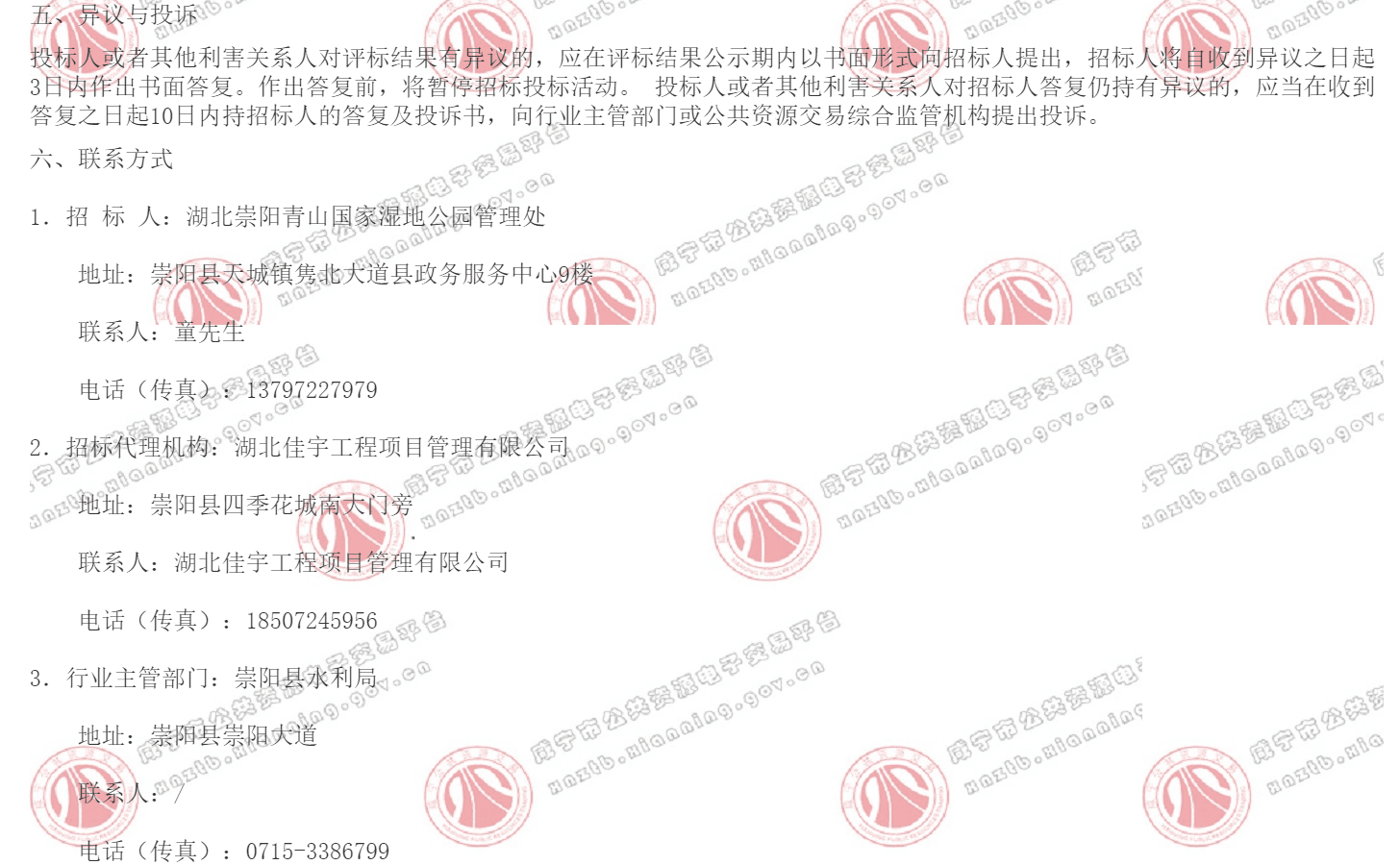 | 1.招 标 人:湖北崇阳青山国家湿地公园管理处 | |||||||||||||||||||||||||||||||||||||||||||||||||||||||||||||||||||||||||||||||